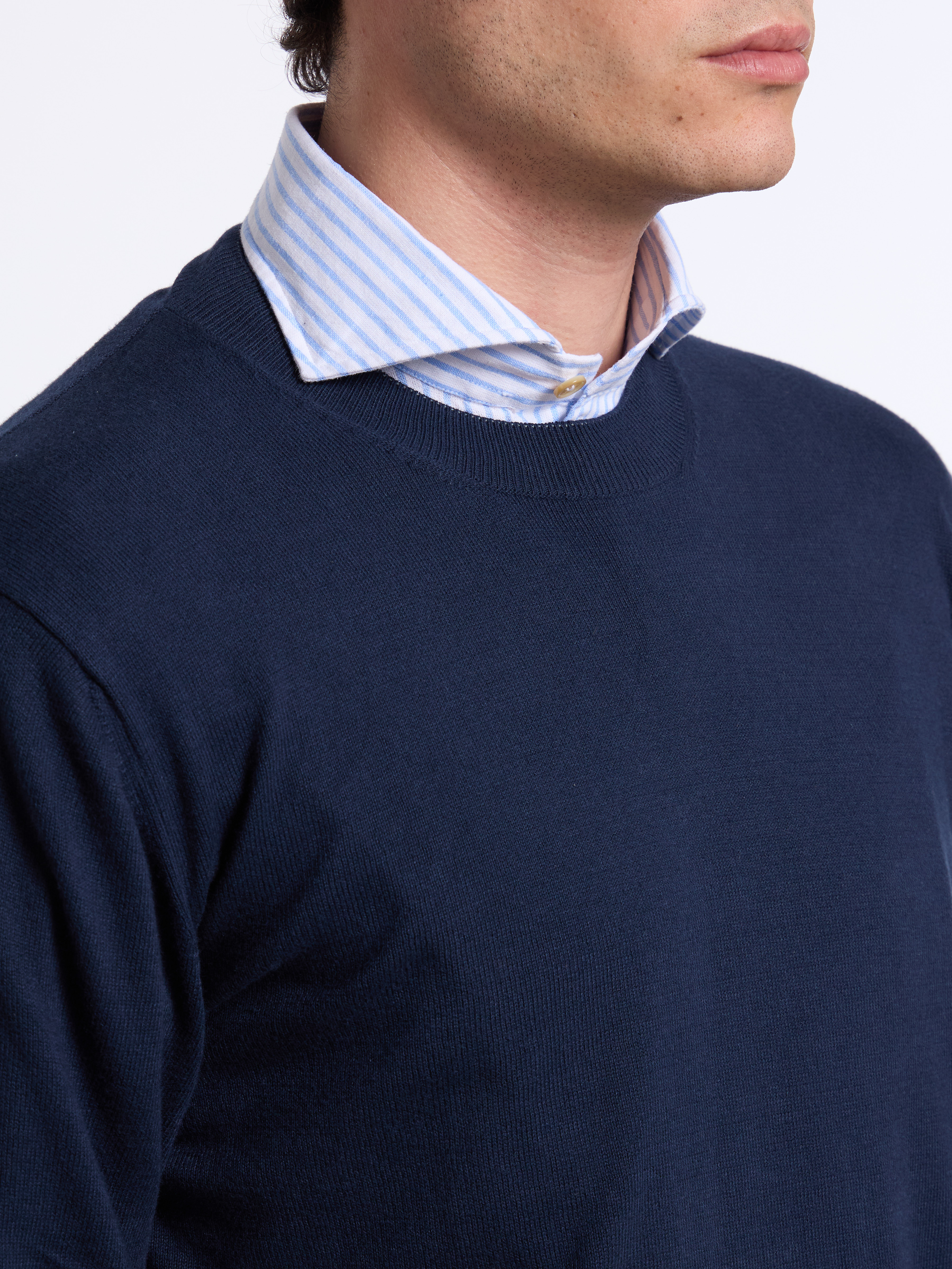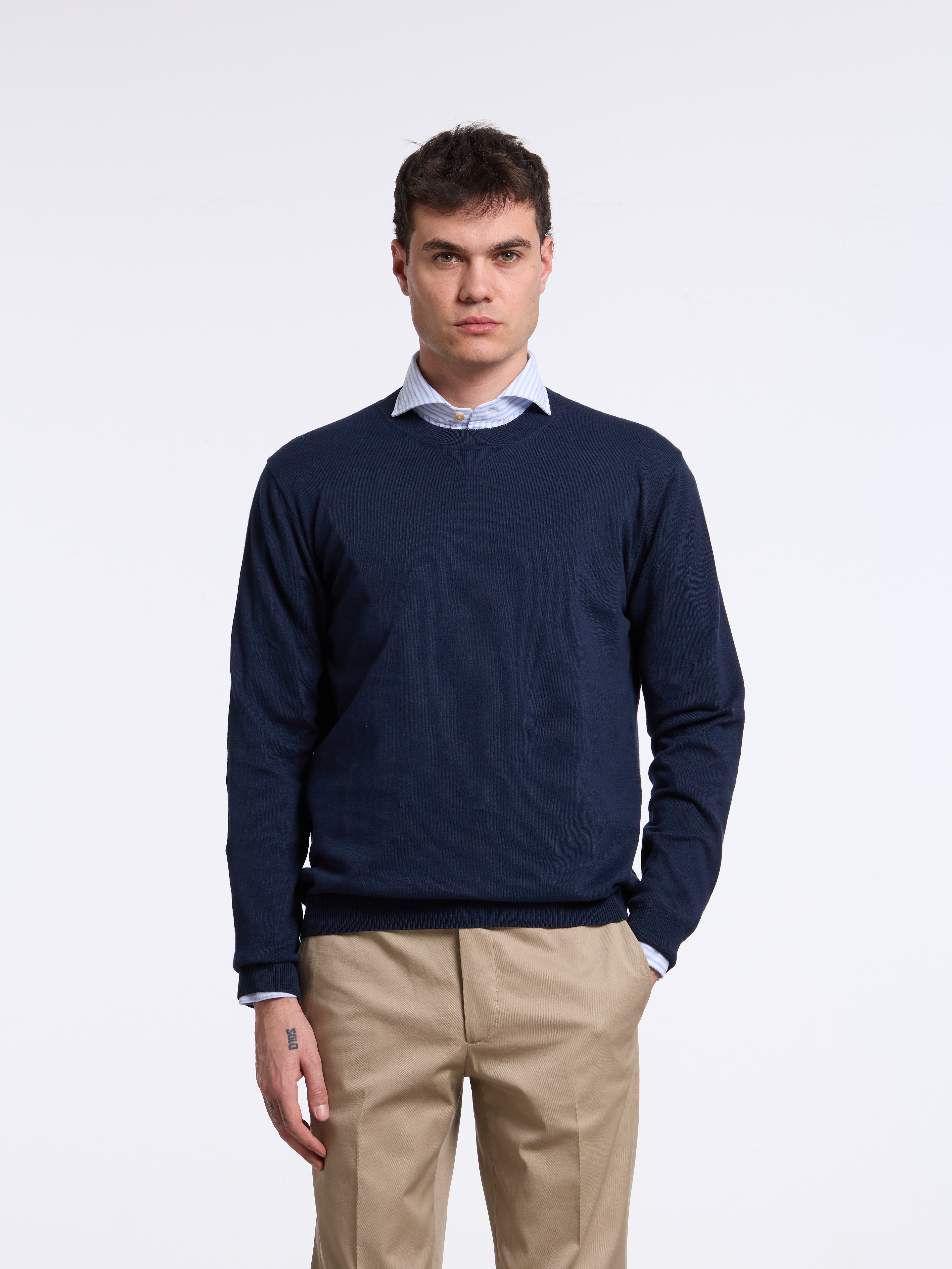 "CONTRASTING EDGES" COTTON SWEATER - BLUE