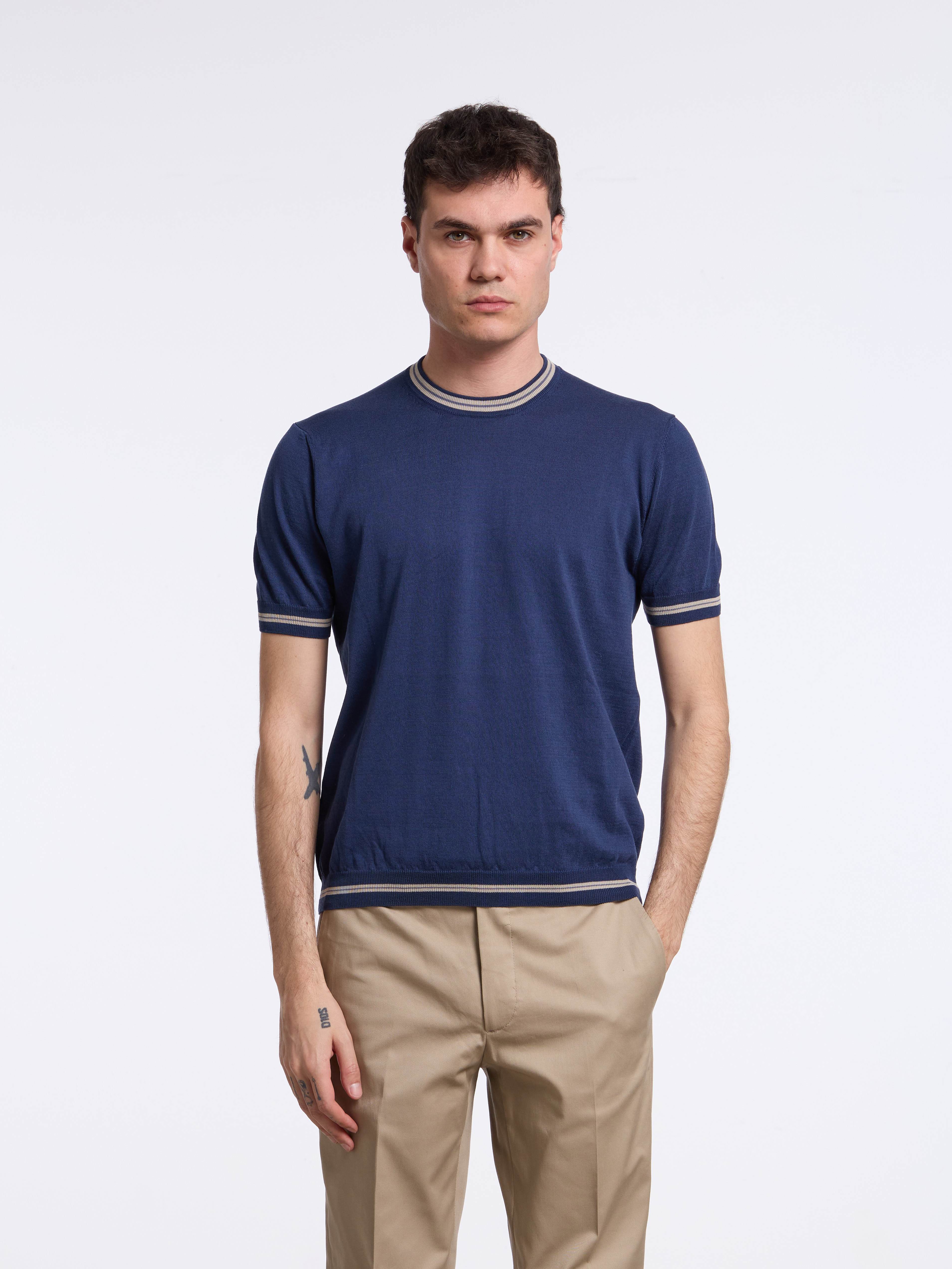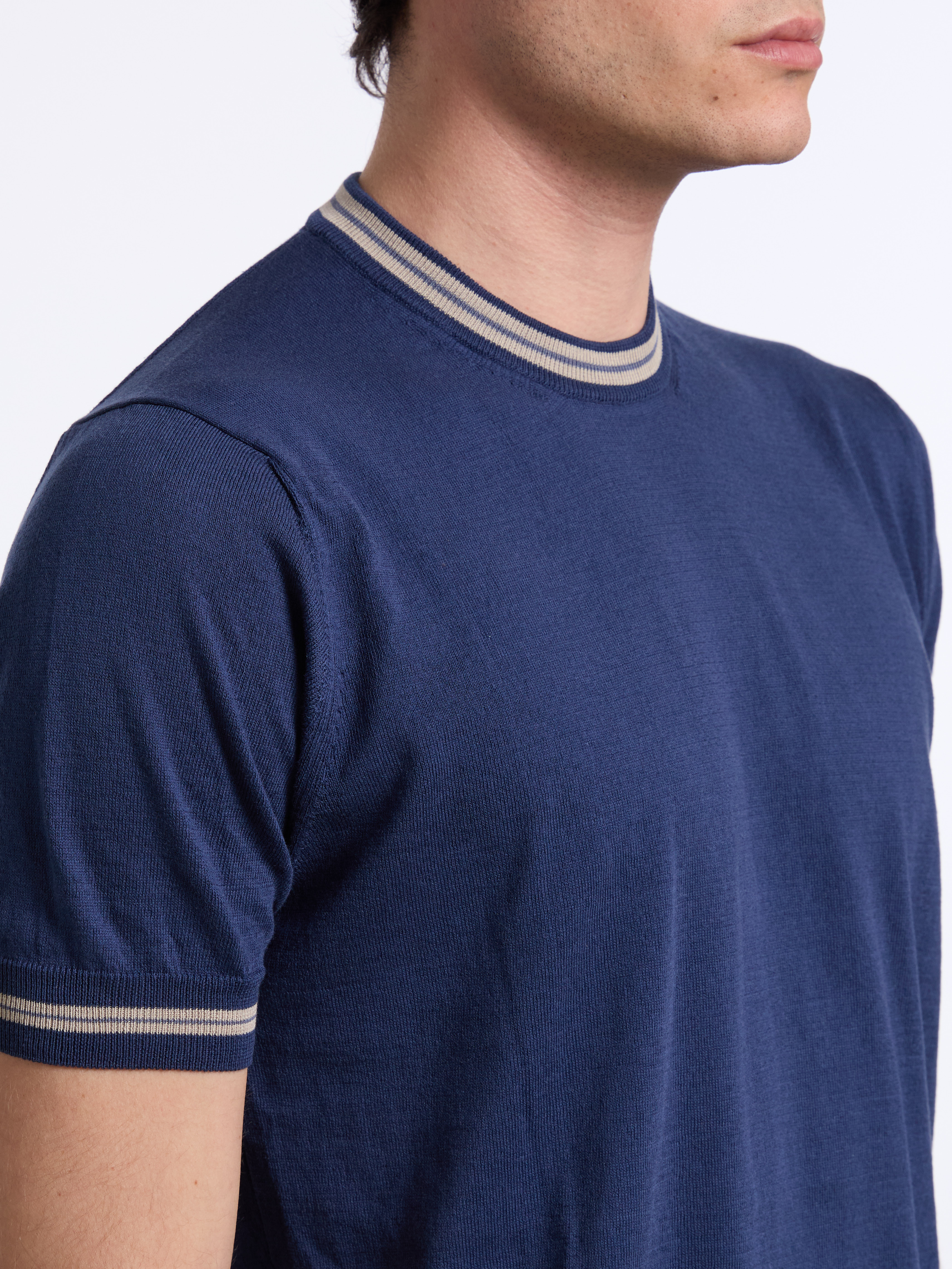 SHORT-SLEEVE COTTON SWEATER - BLUE