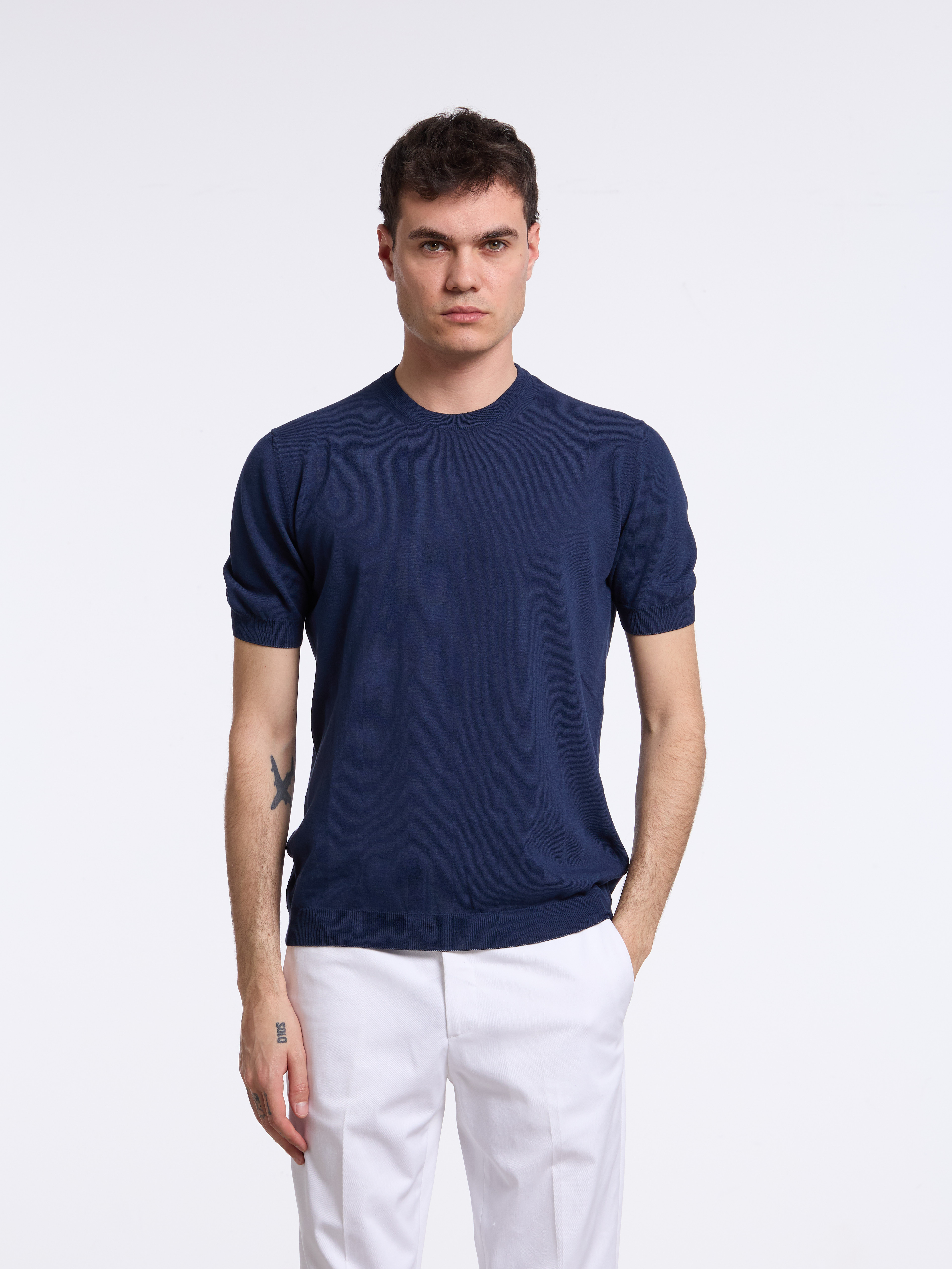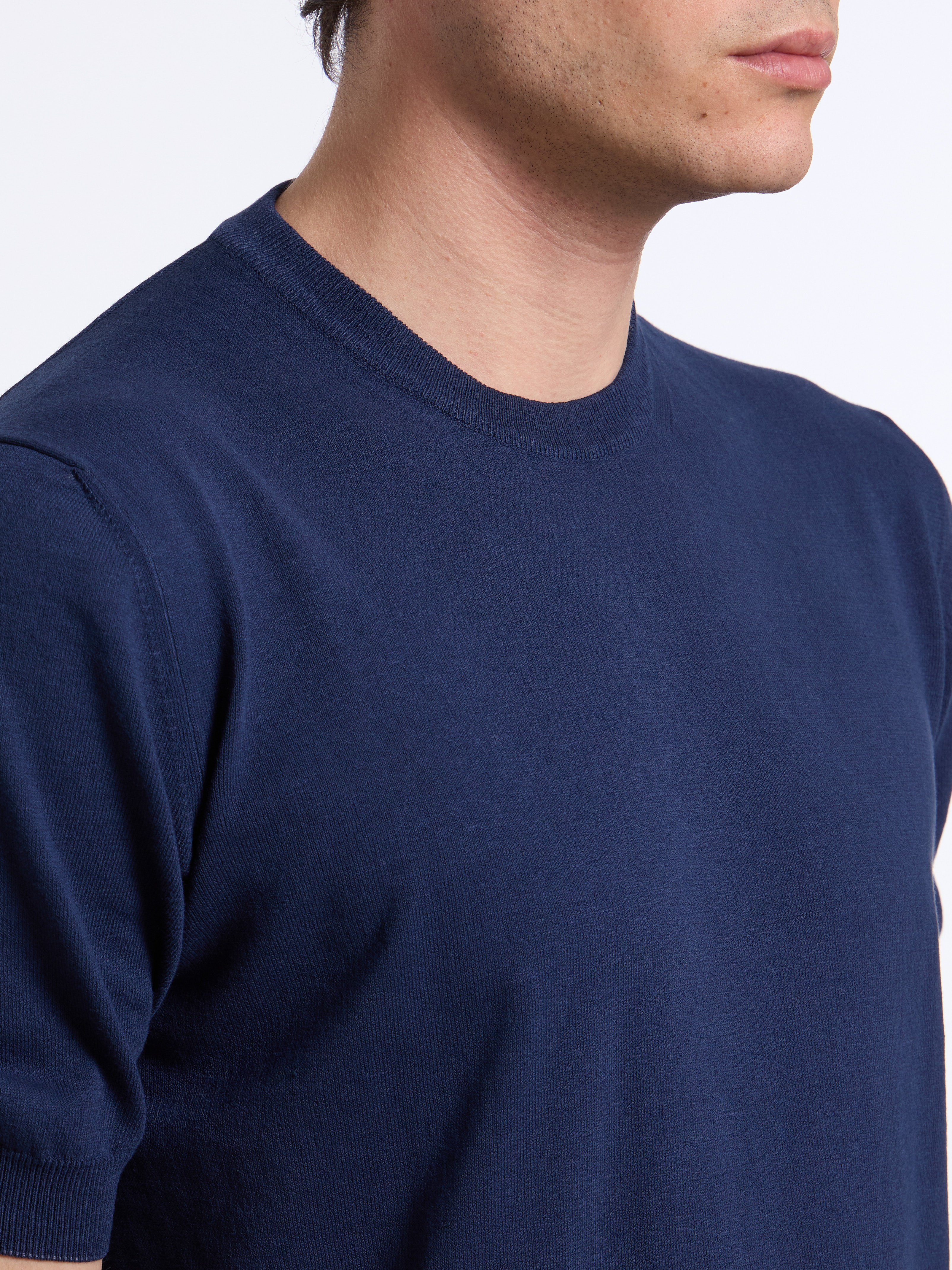SHORT-SLEEVE COTTON SWEATER - BLUE