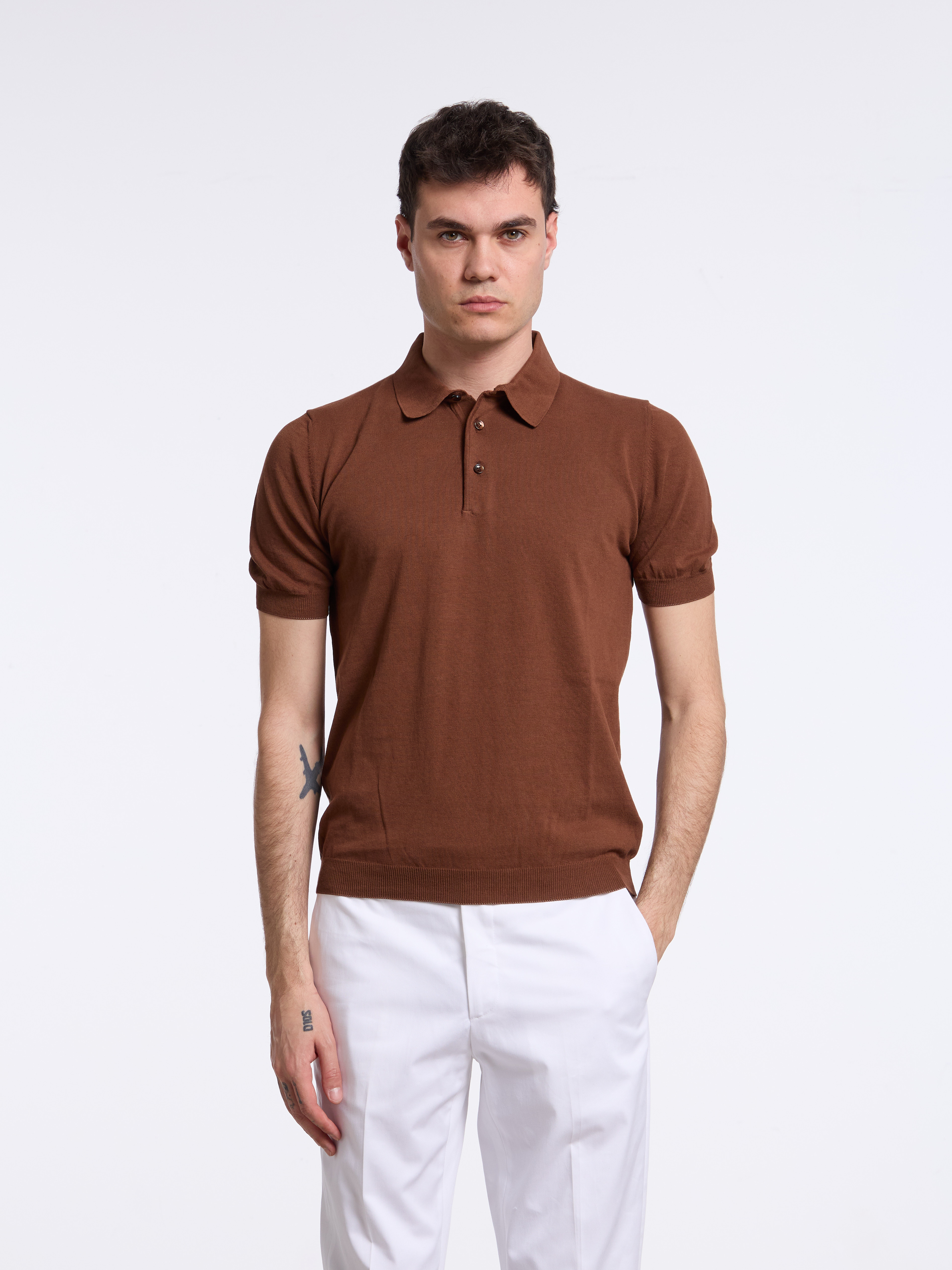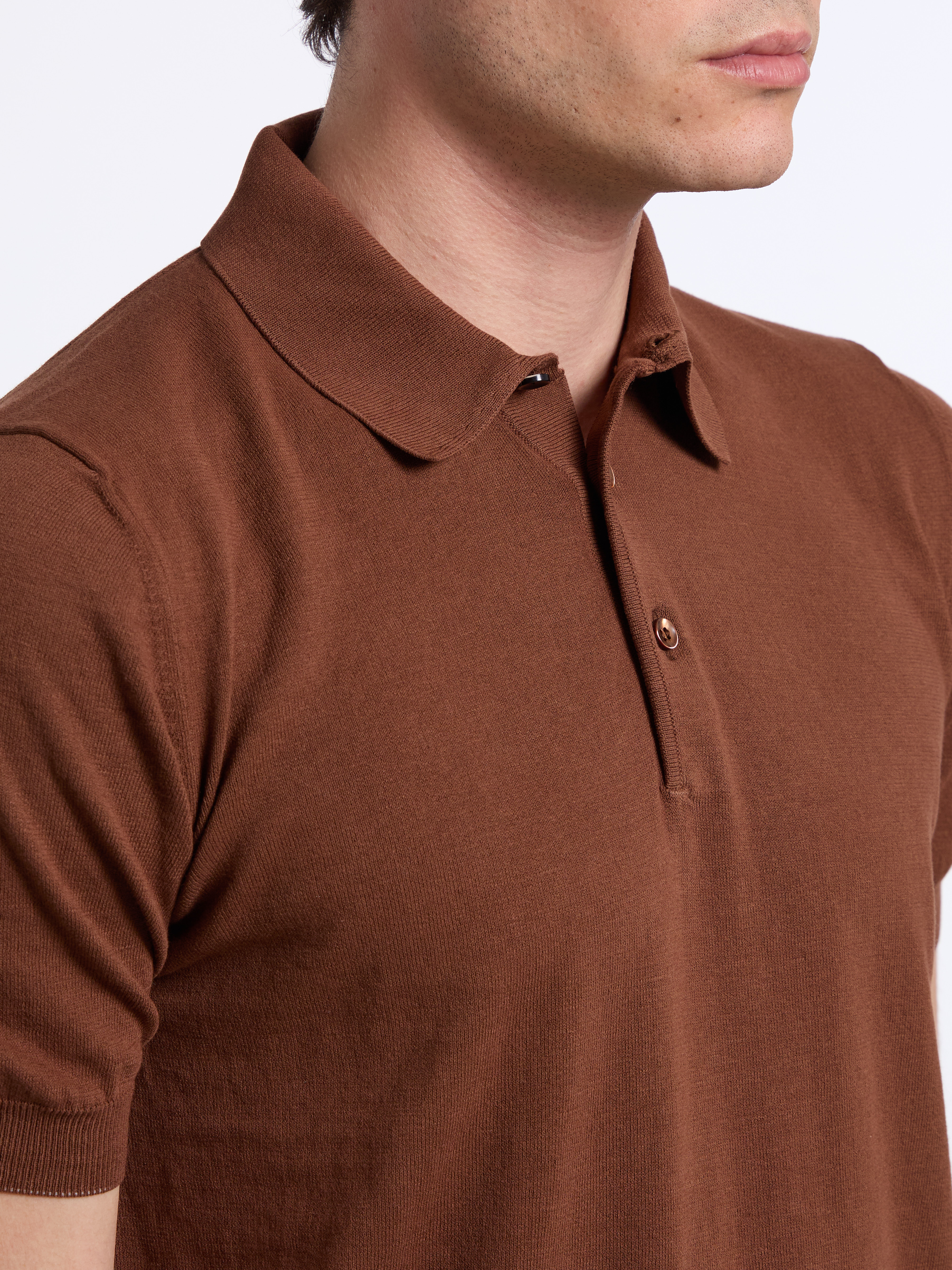 SHORT-SLEEVE BUTTON POLO - BROWN