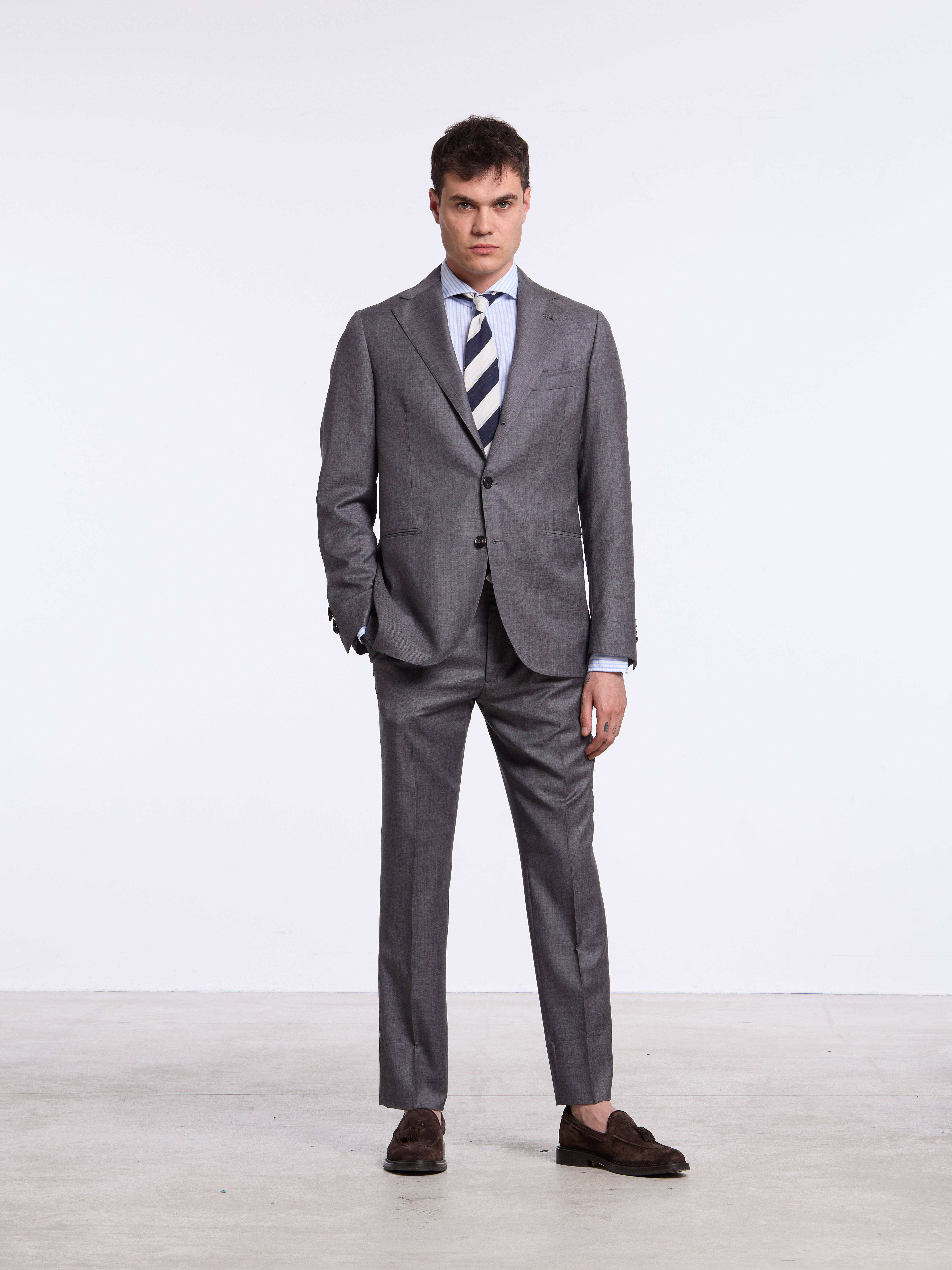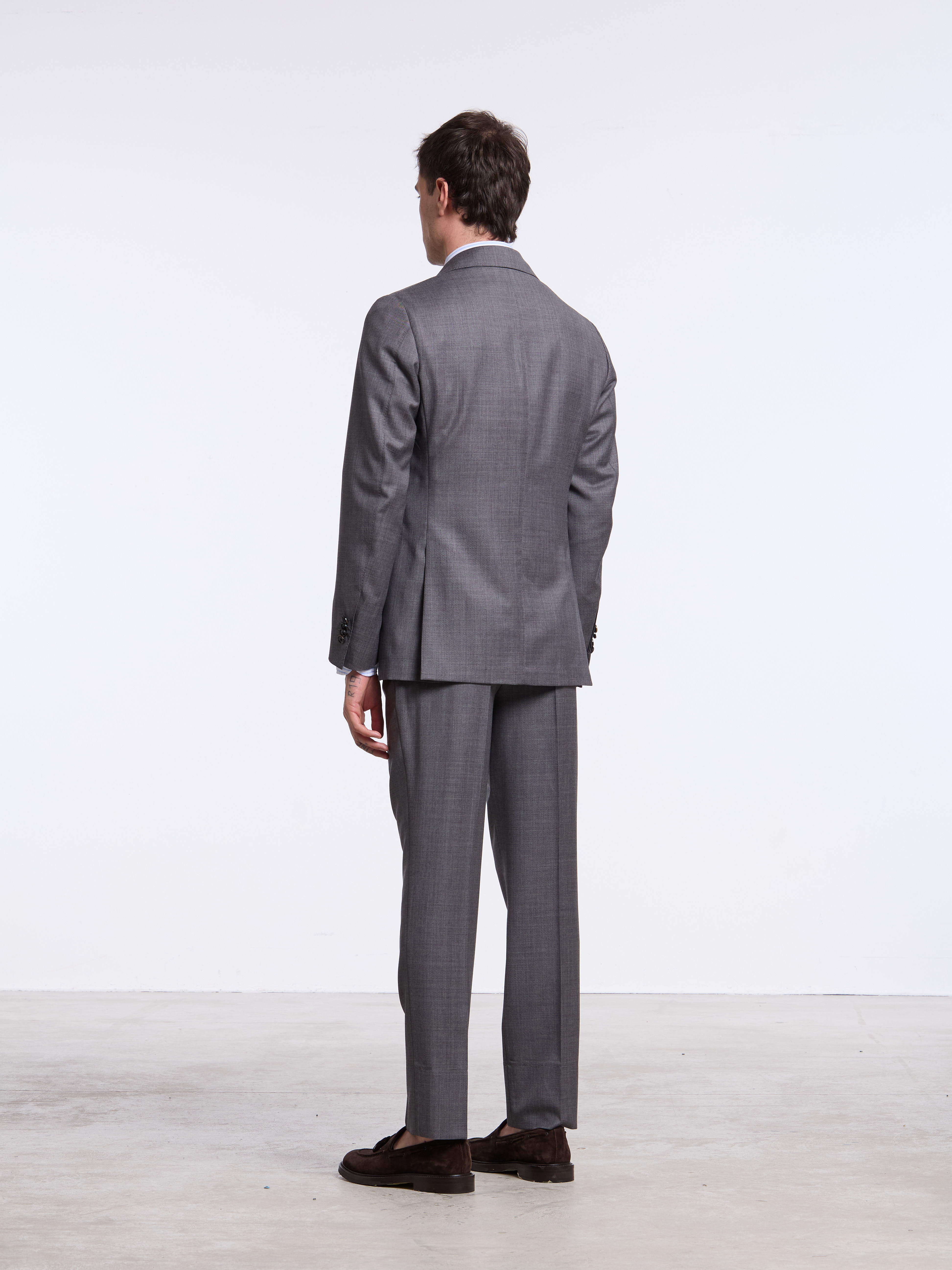 SINGLE-BREASTED UNSTRUCTURED MERINO WOOL SUIT - GREY