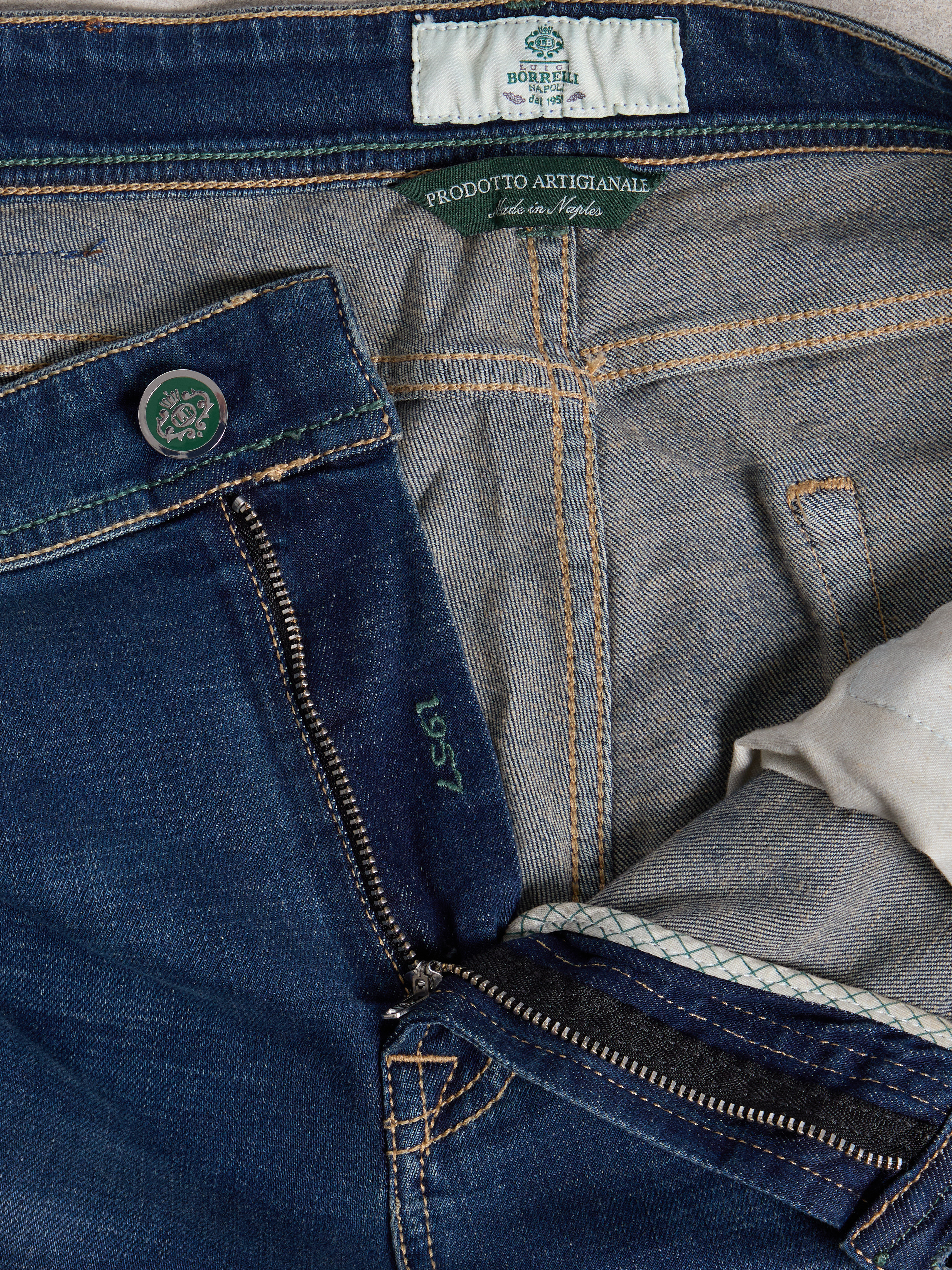 - OTHER DETAILS: Back-logo patch, selvedge bar, inner leg saddle stitch, extra buttons, Made in Italy