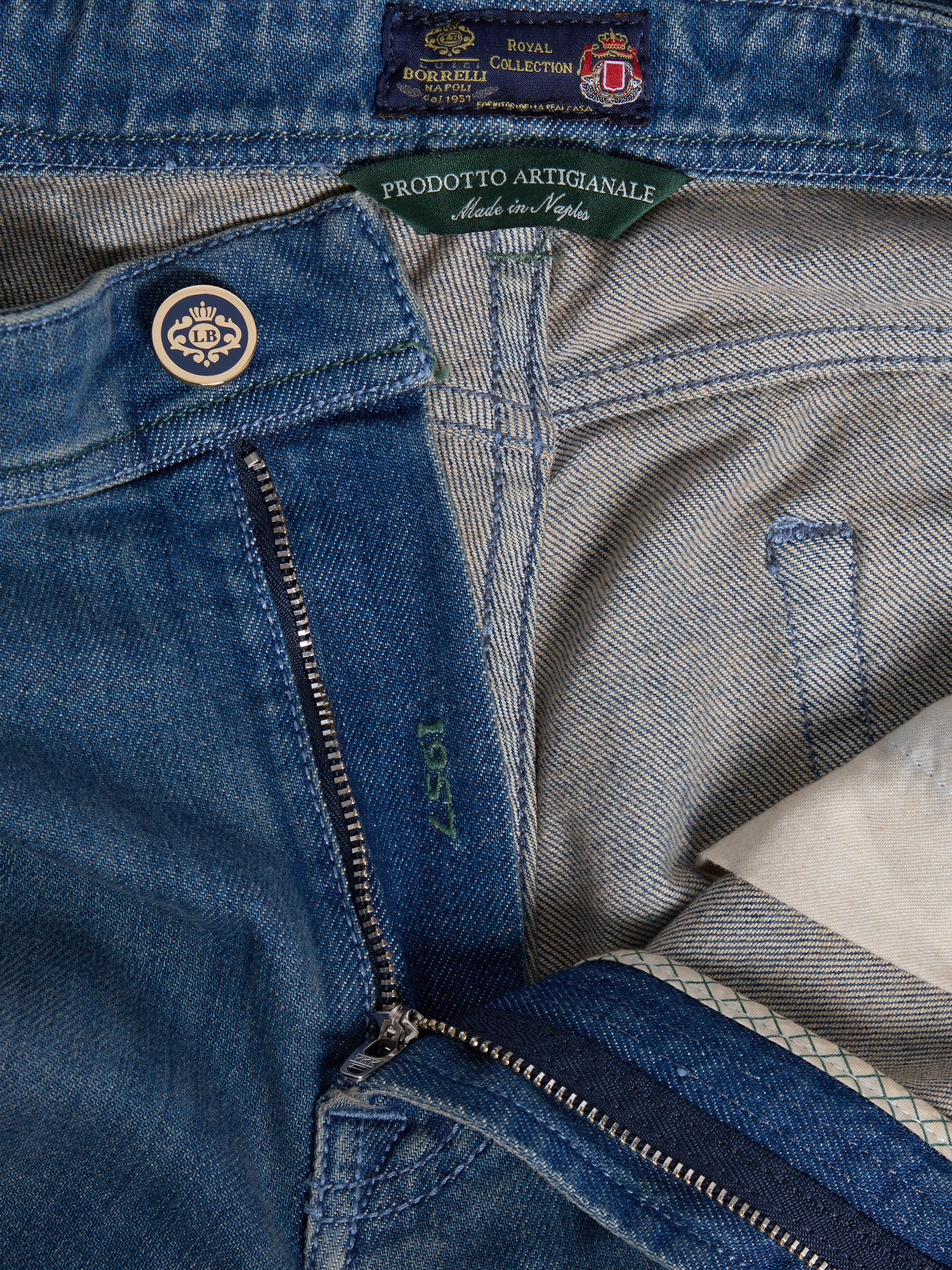 - OTHER DETAILS: Gold-plated buttons and rivets, back-logo patch, selvedge bar, inner leg saddle stitch, extra buttons, Made in Italy