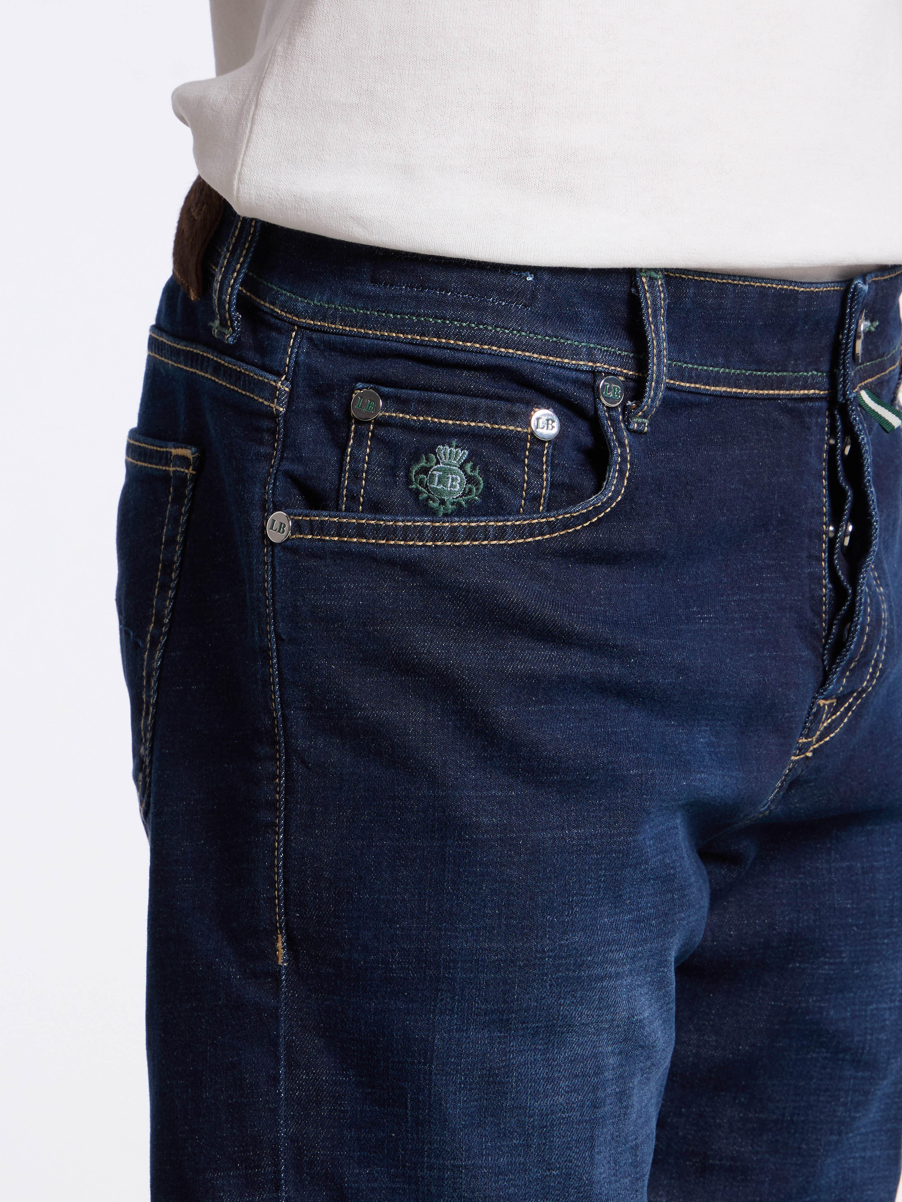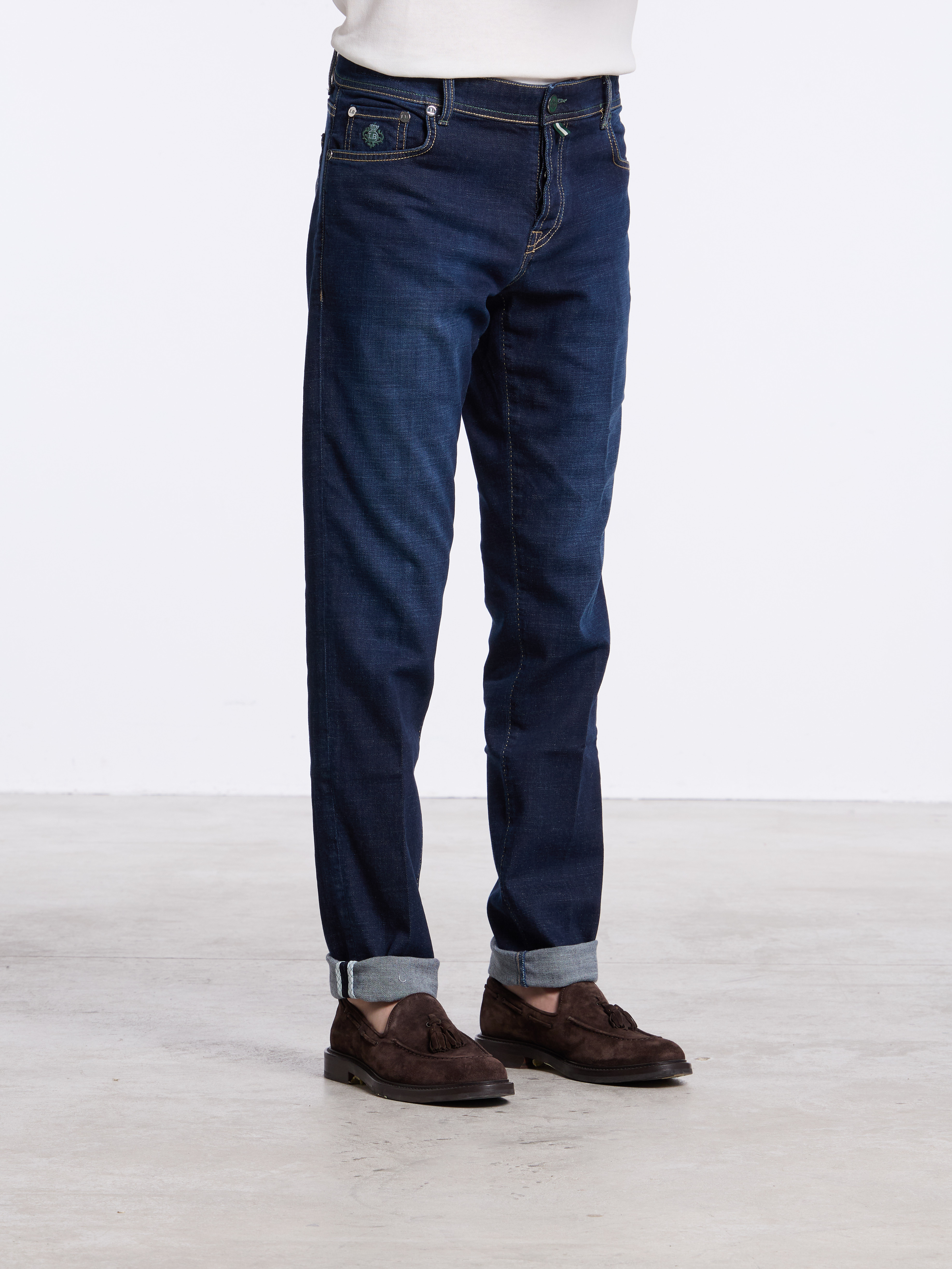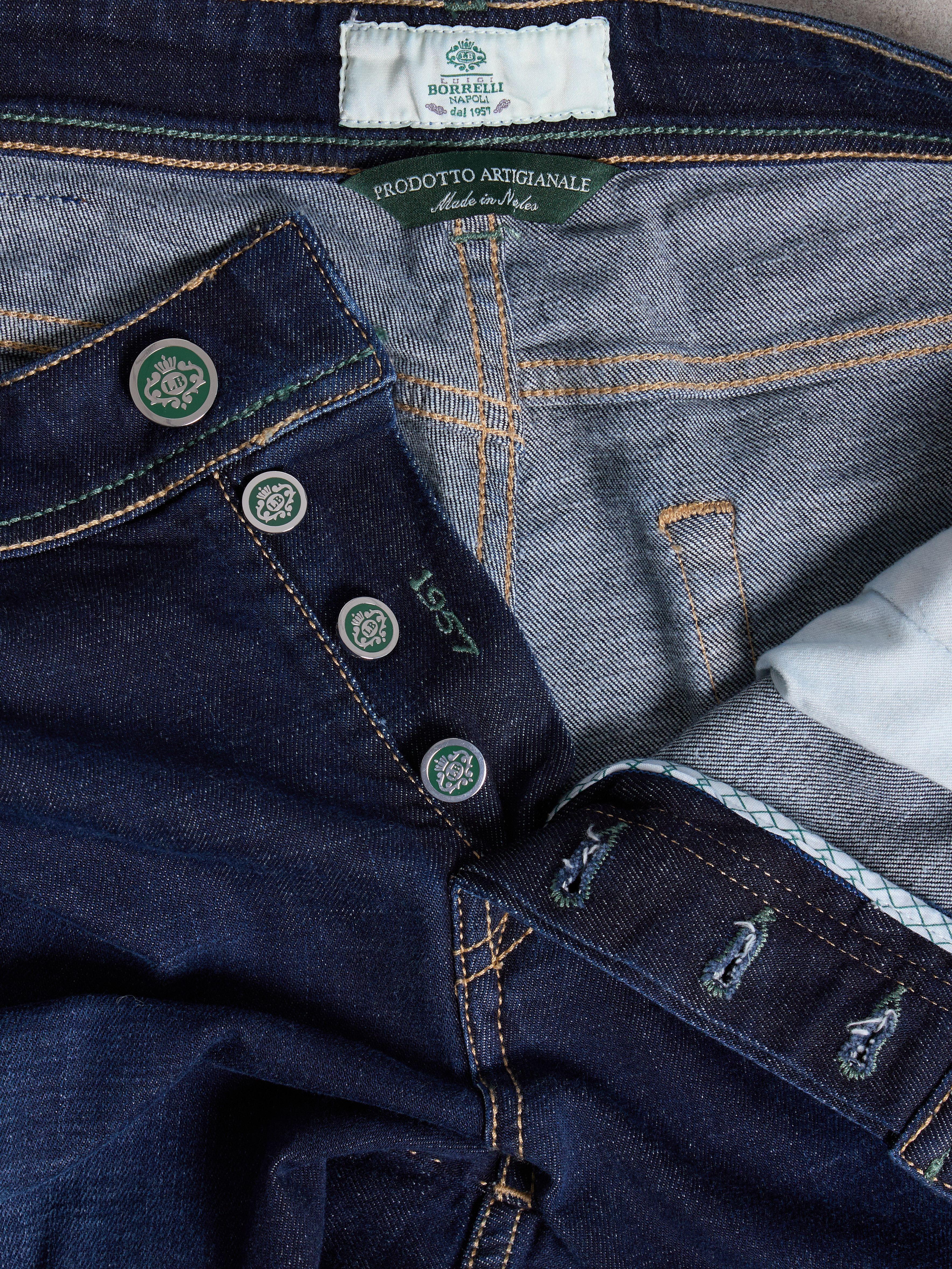 - OTHER DETAILS: Back-logo patch, selvedge bar, inner leg saddle stitch, extra buttons, Made in Italy