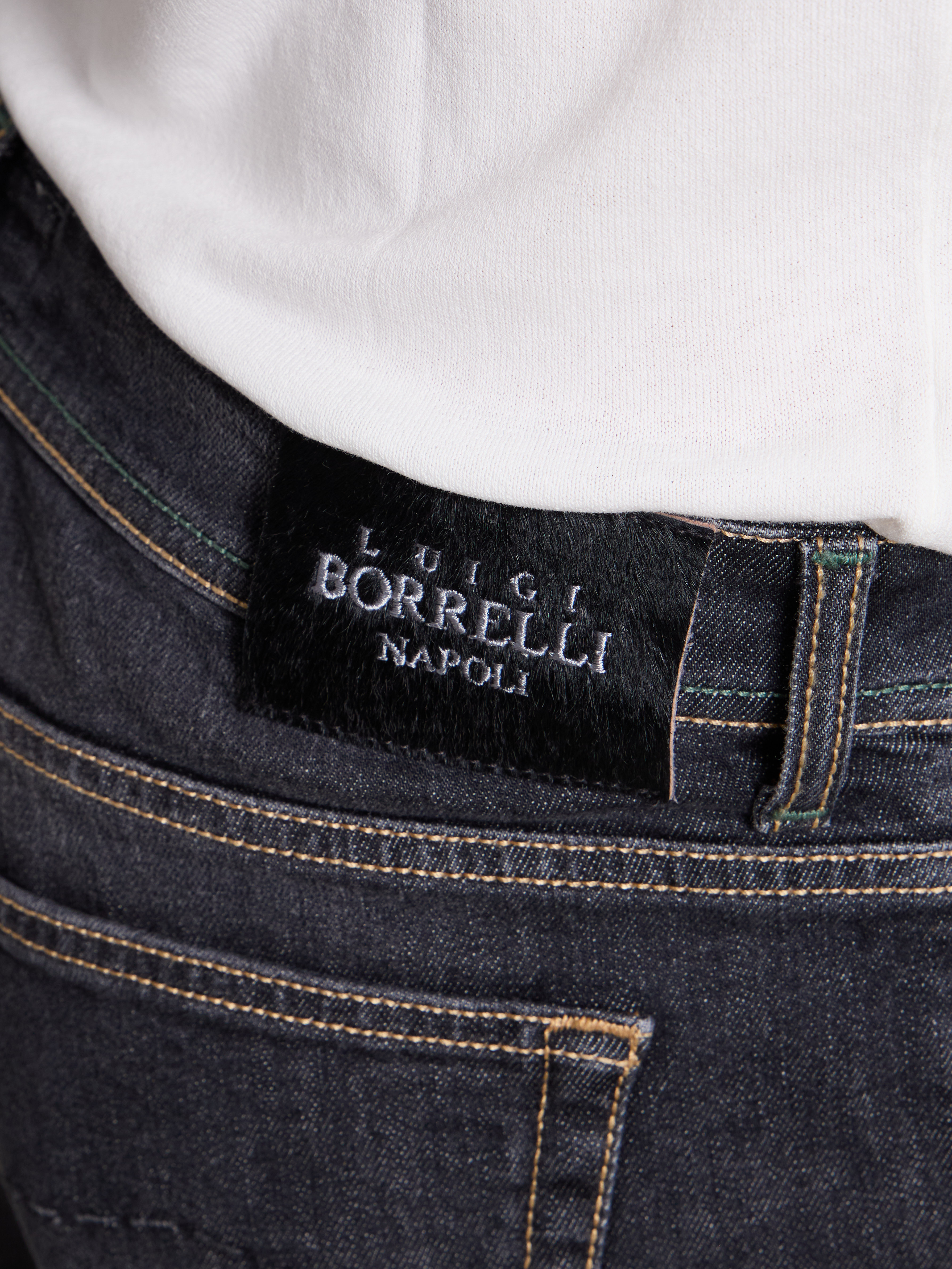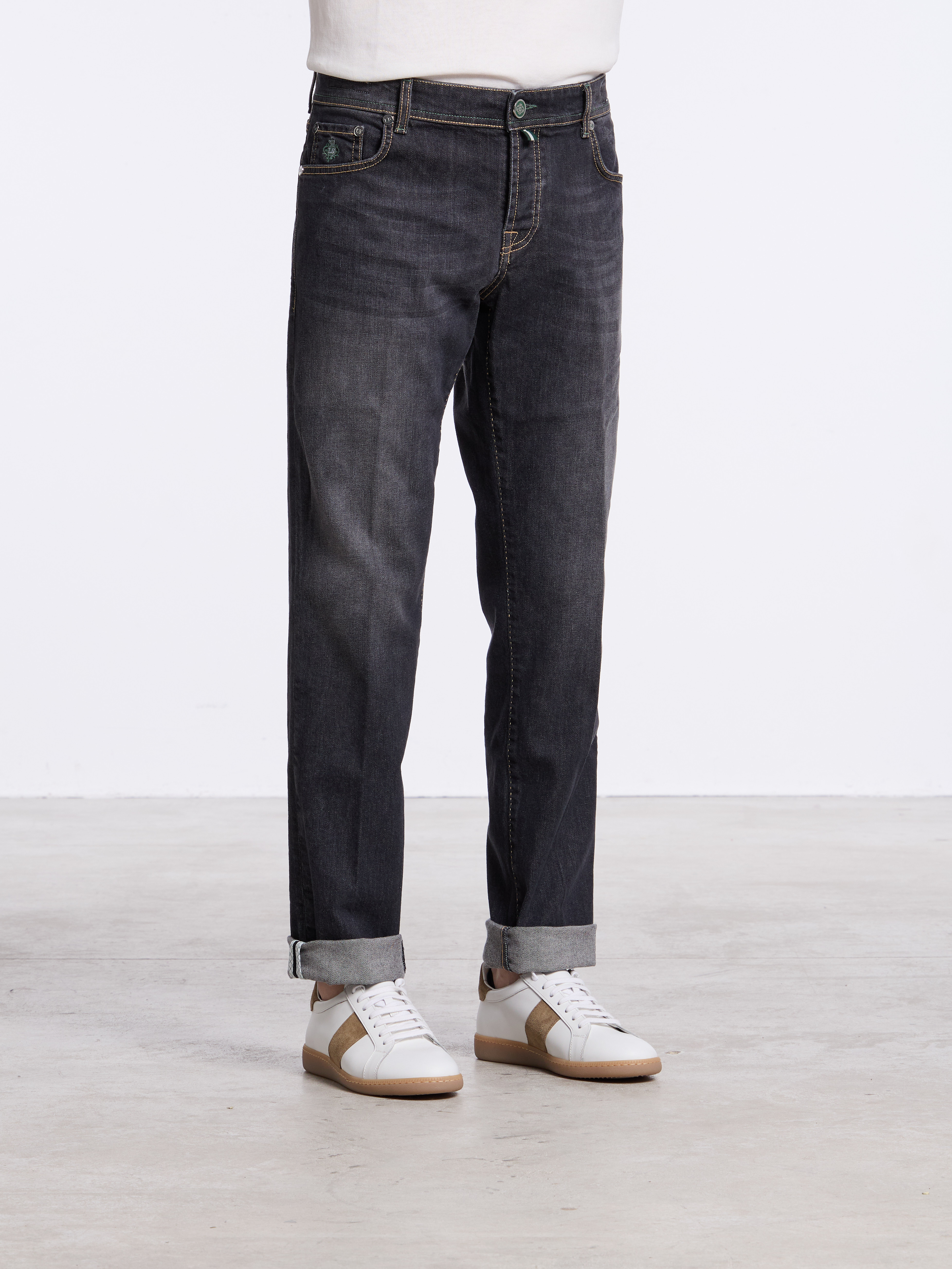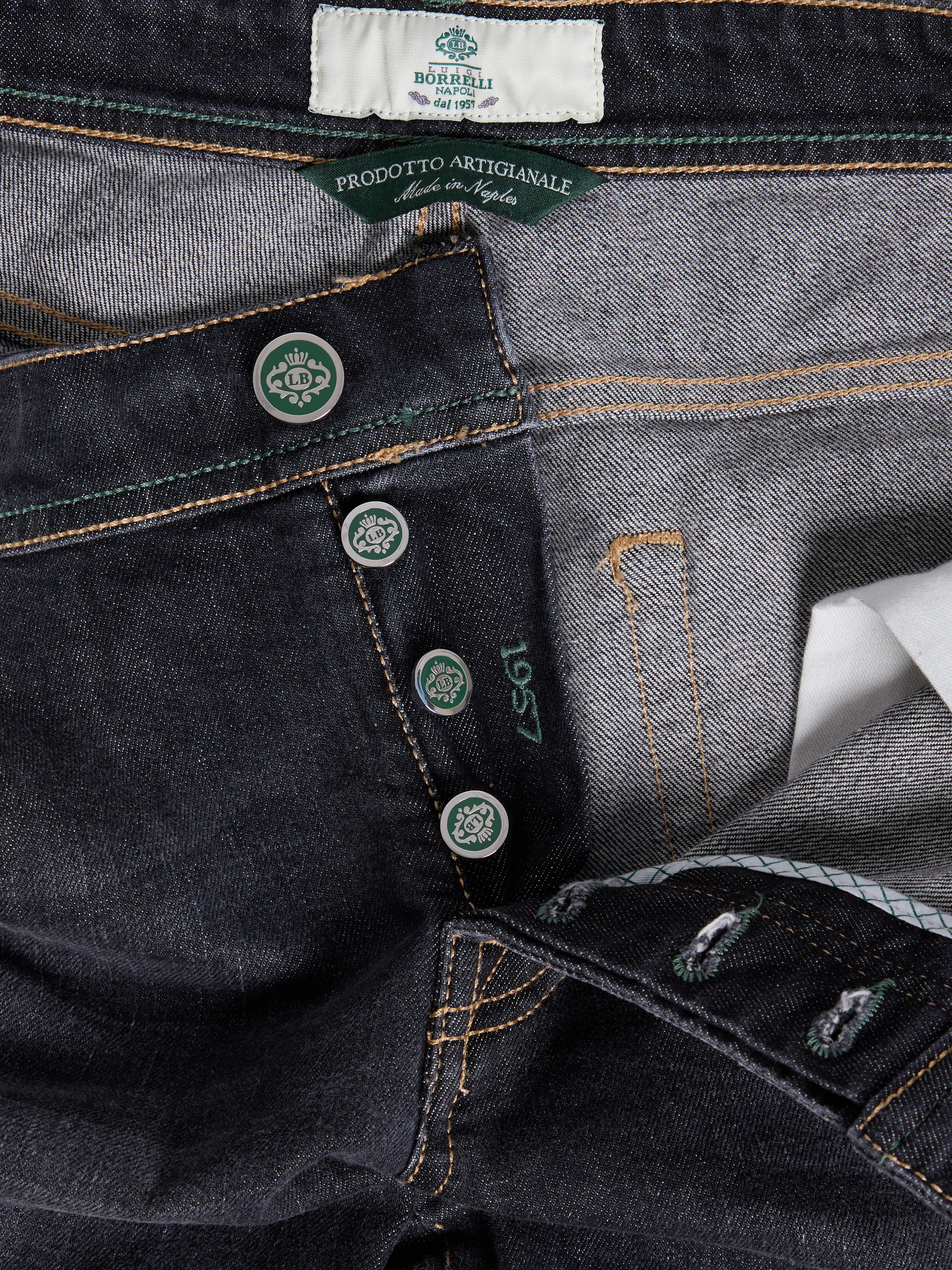 - OTHER DETAILS: Back-logo patch, selvedge bar, inner leg saddle stitch, extra buttons, Made in Italy
