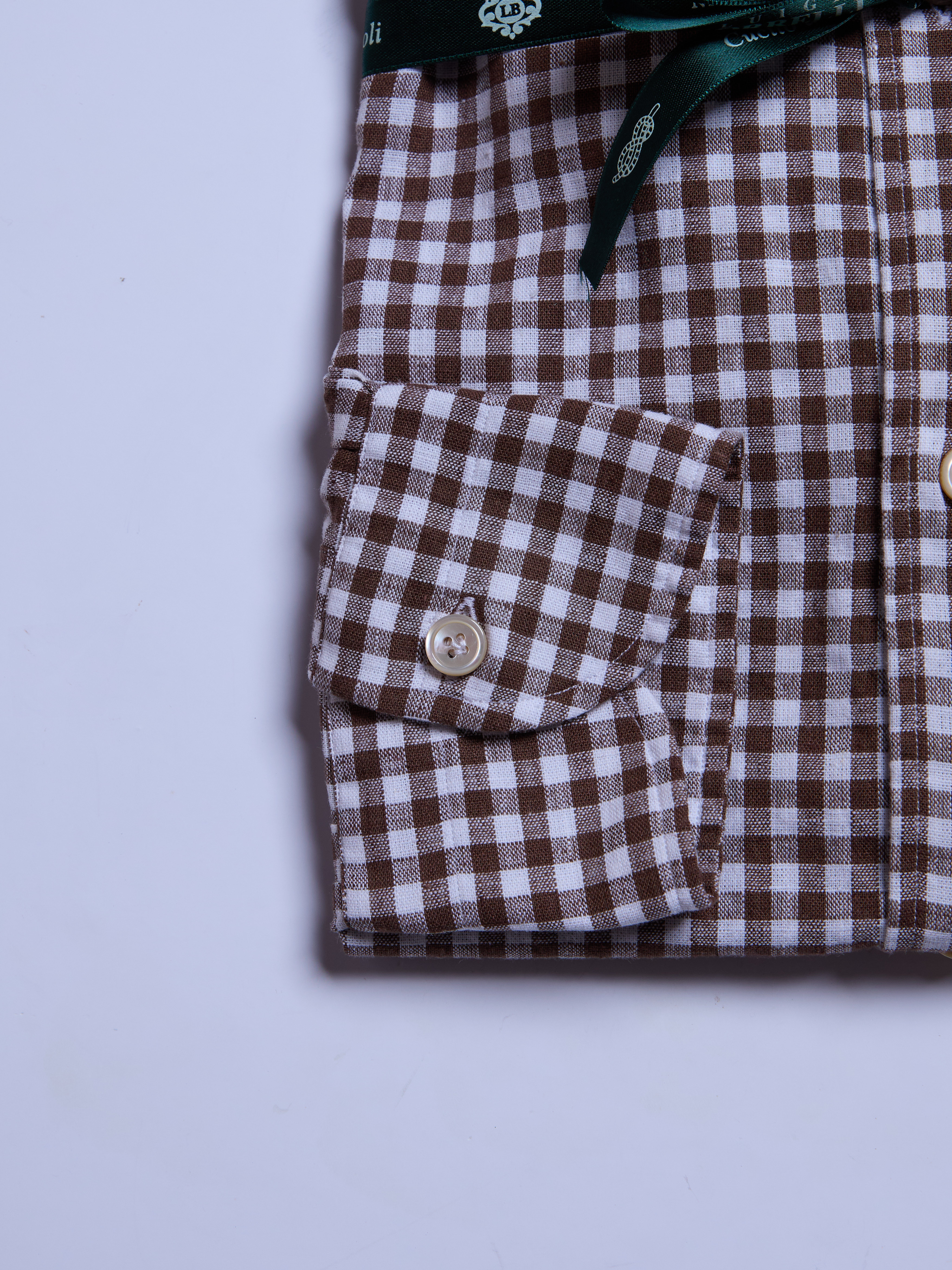 CHECKED "LINEN BLEND" SHIRT - BROWN