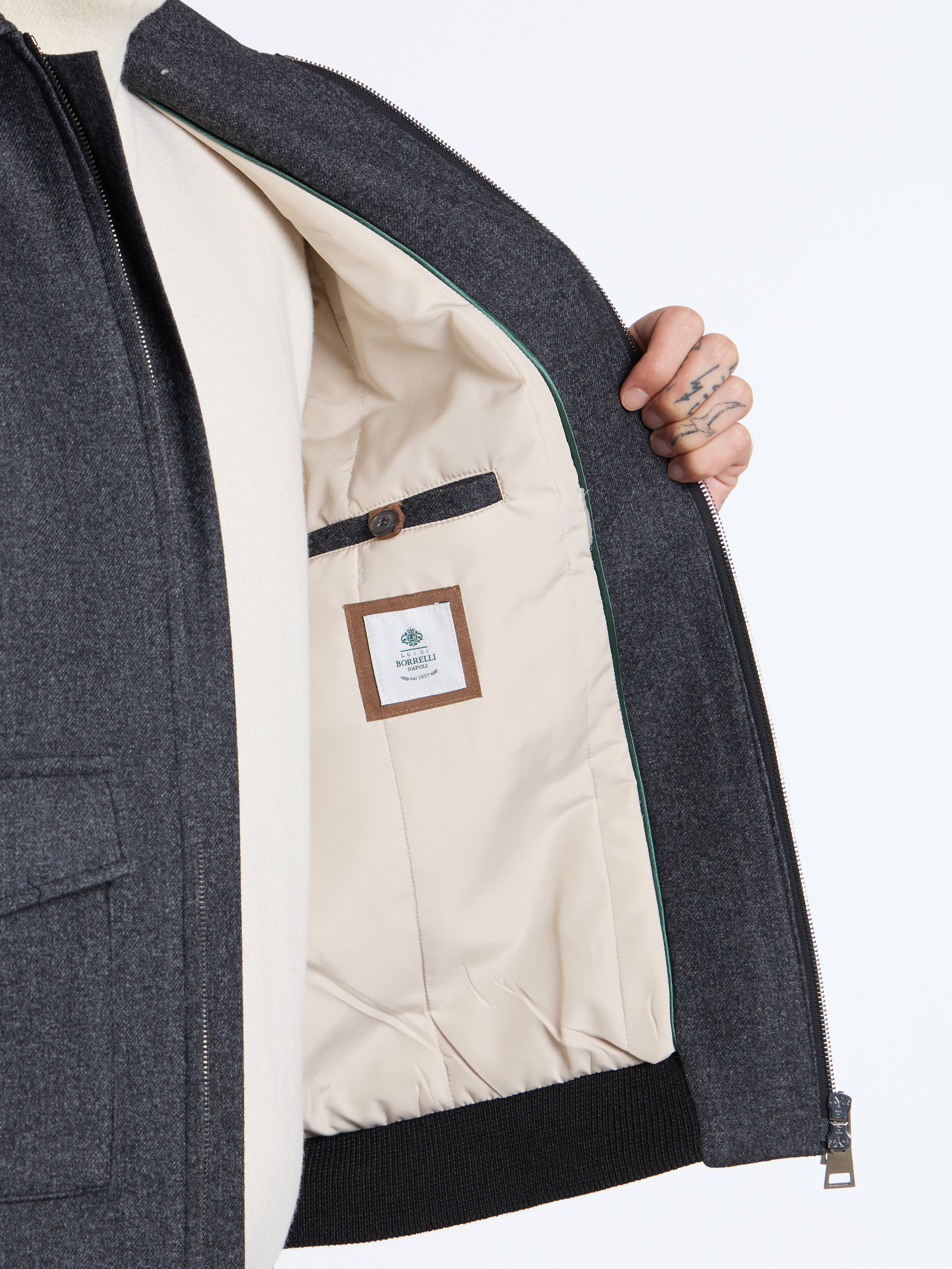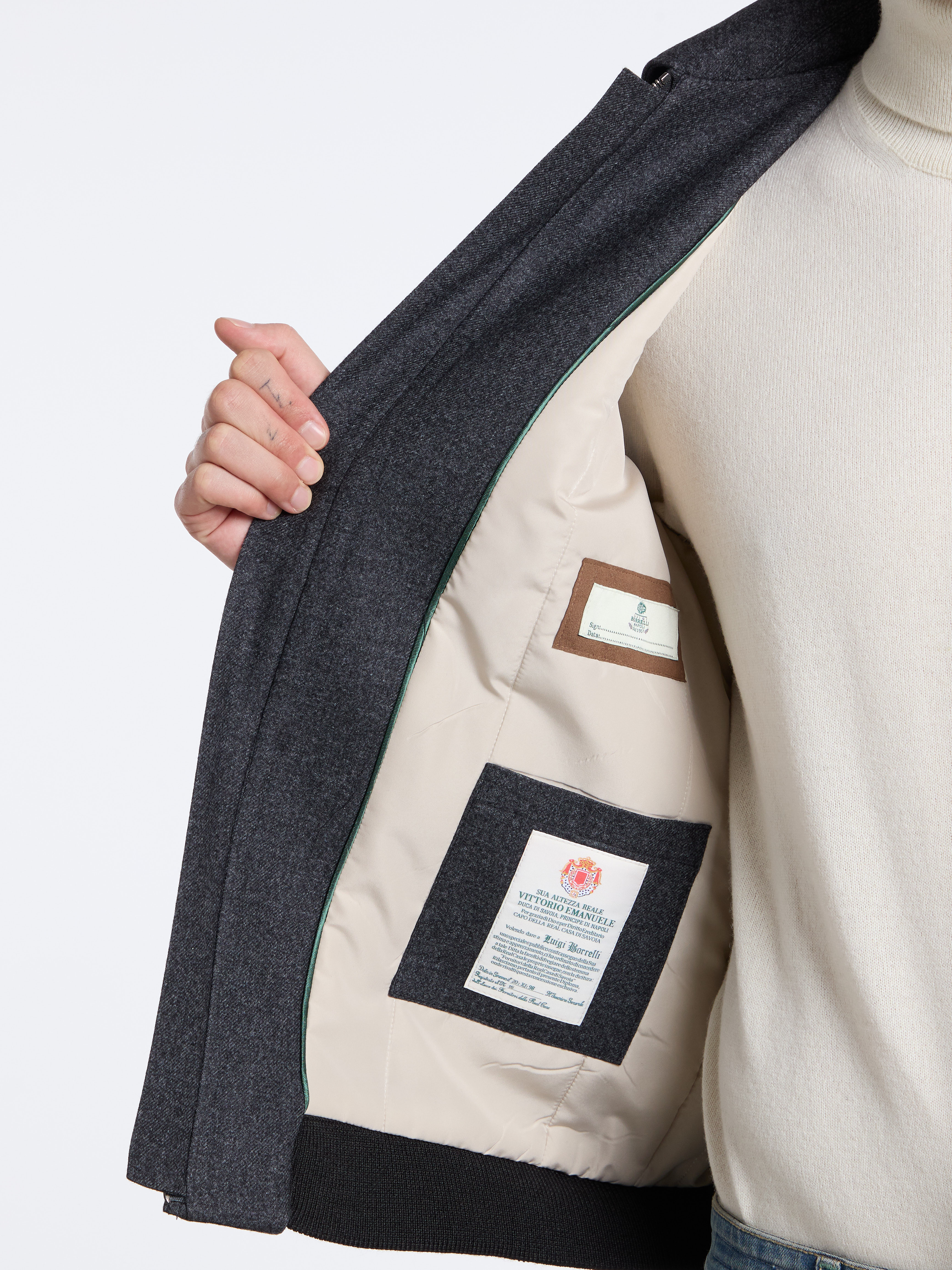 - OTHER DETAILS: Large side pockets with flap, elasticated waist, inside pocket, buttoned cuffs, Made in Italy