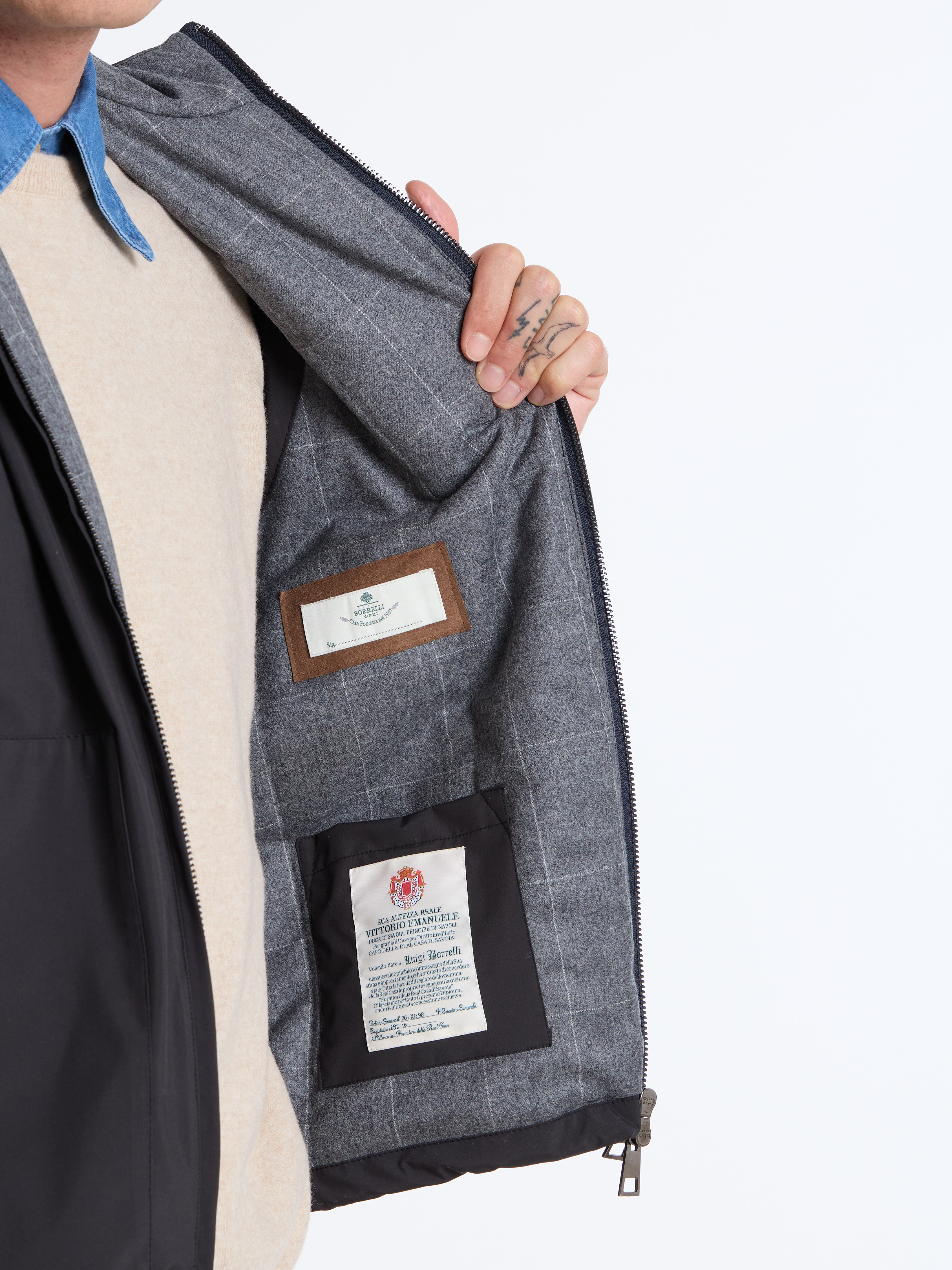 - OTHER DETAILS: Open side pockets, contrasting pinstripe lining, inside pocket, drawstring hood, Made in Italy.