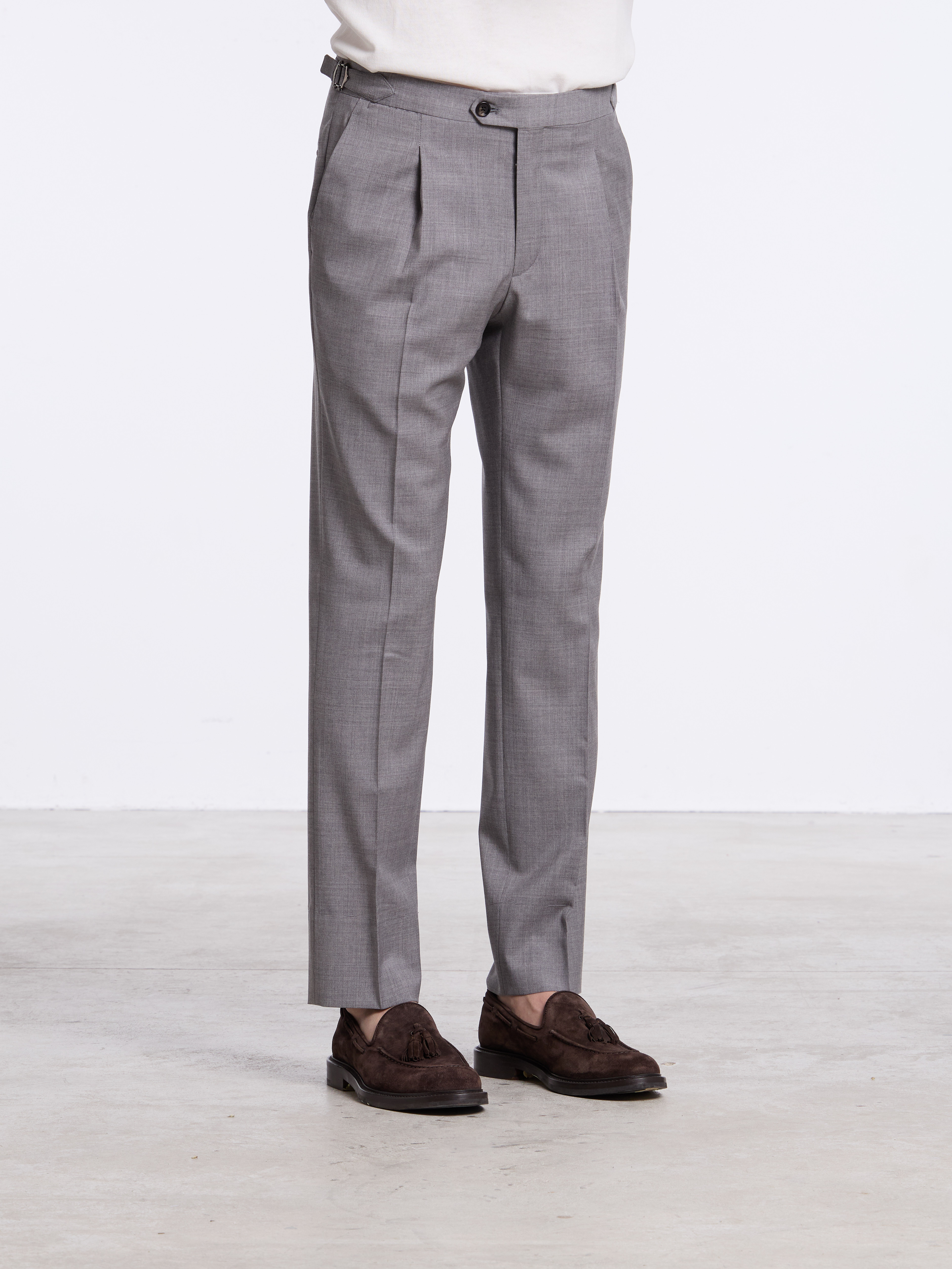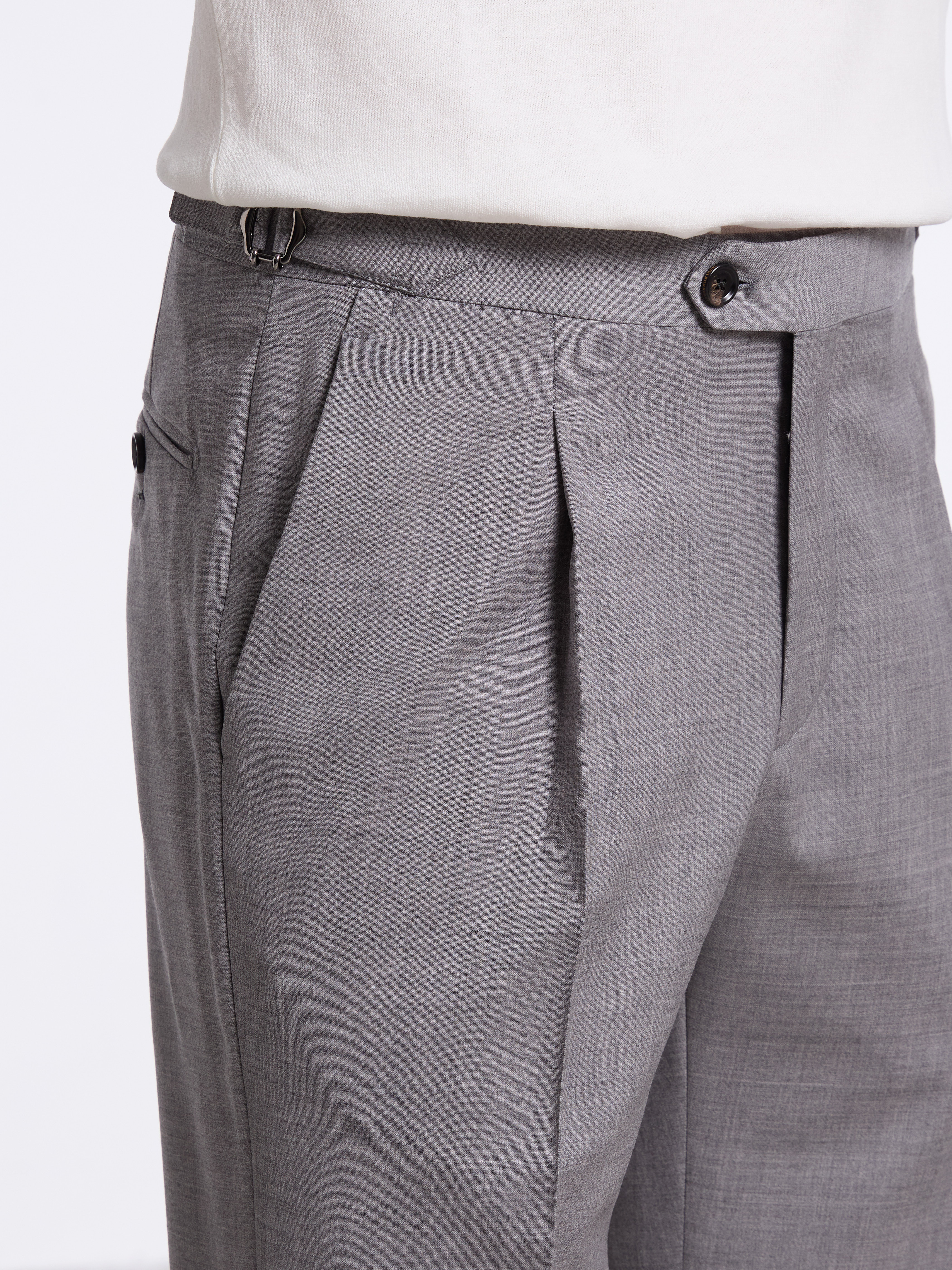 CLASSIC WOOL TROUSERS WITH BUCKLES - GREY