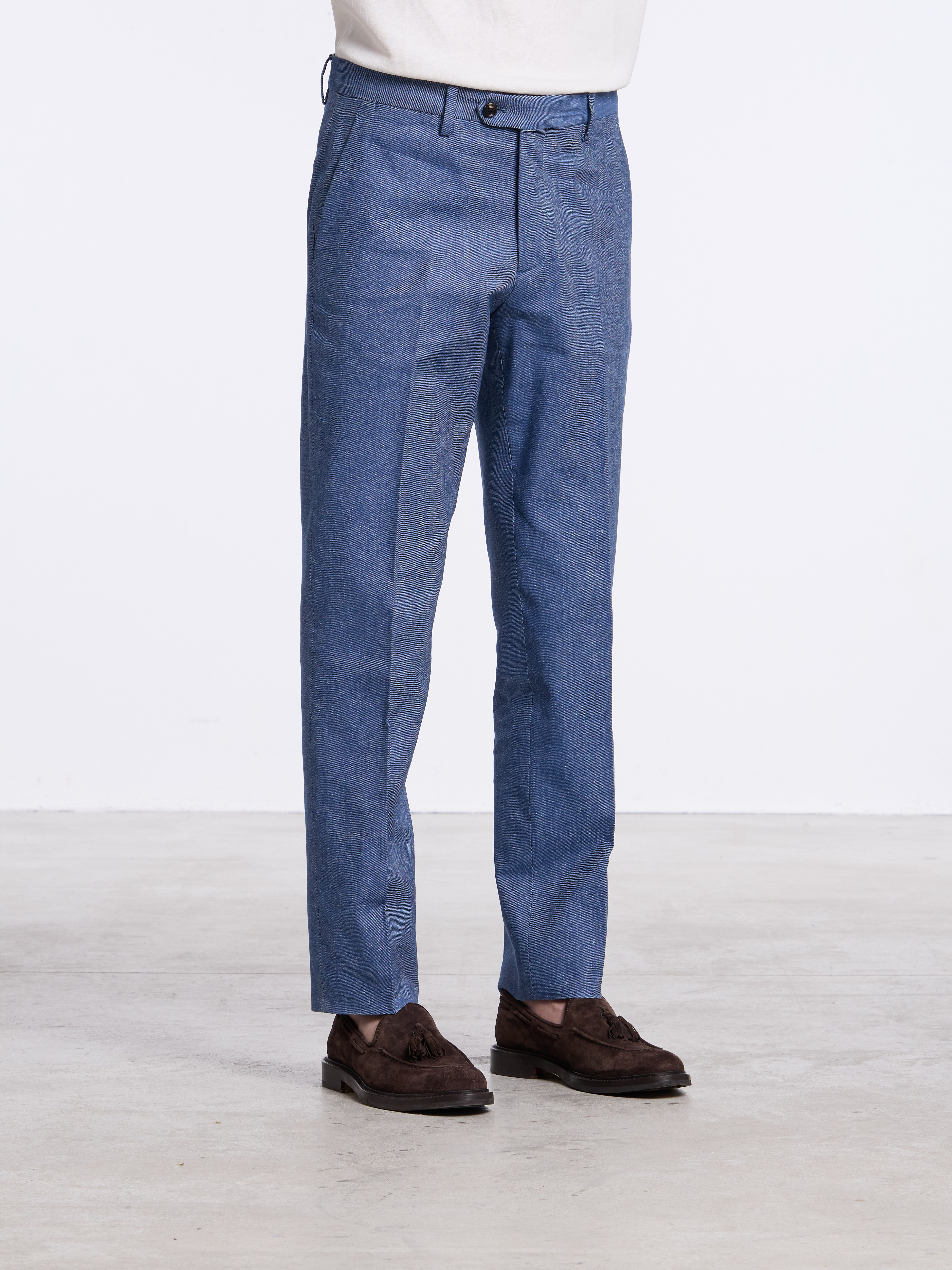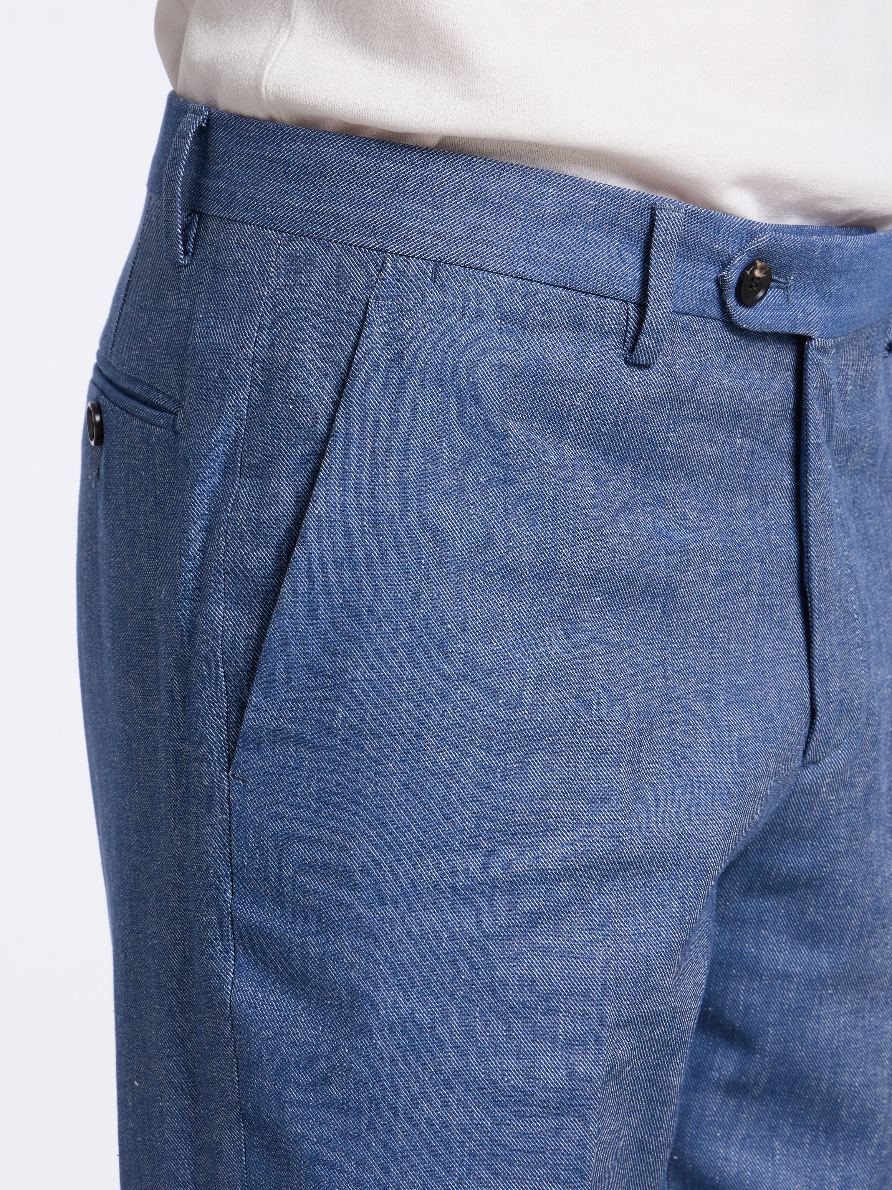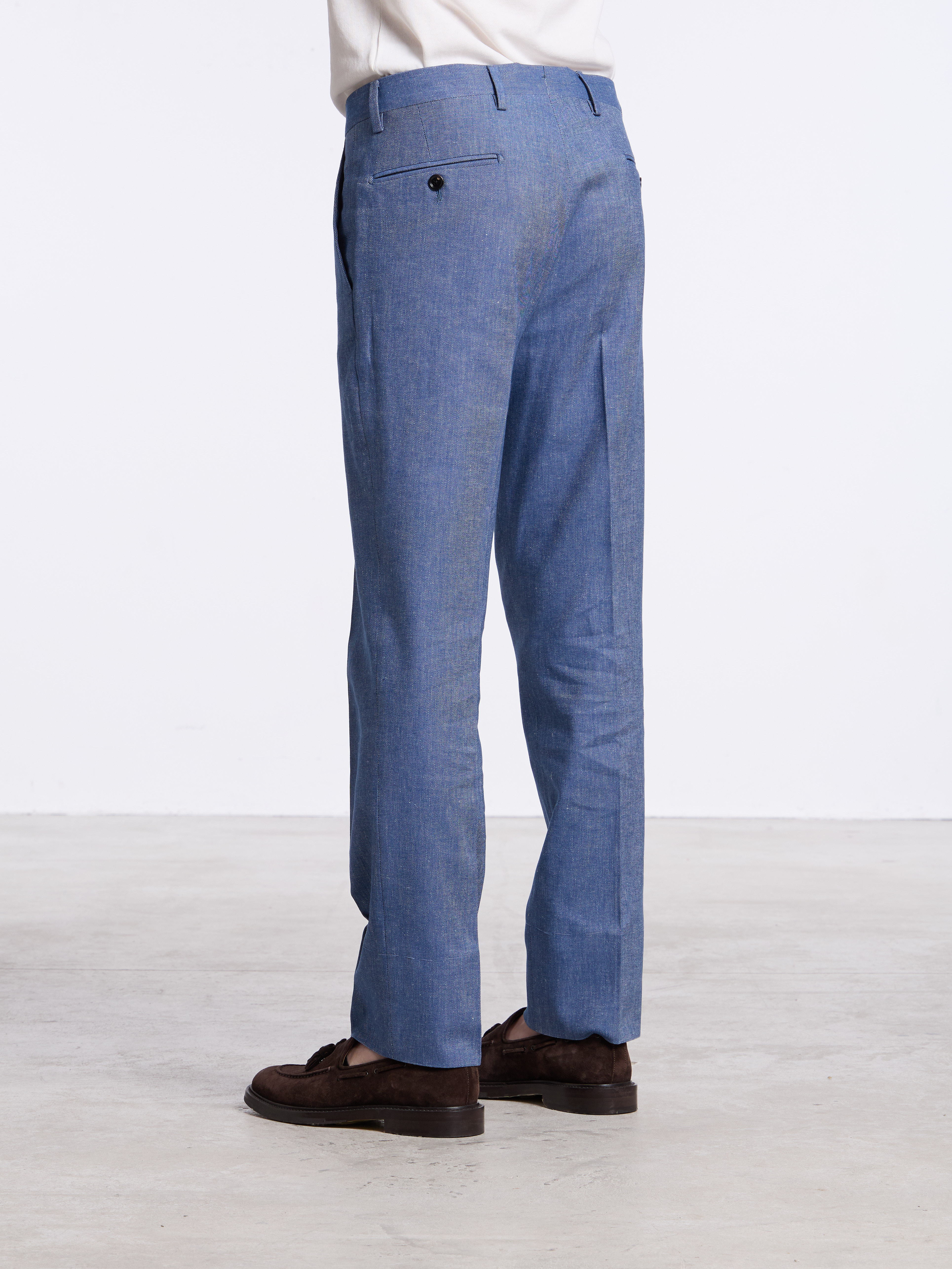 CLASSIC "NO PENCES" COTTON/LINEN TROUSERS - LIGHT BLUE
