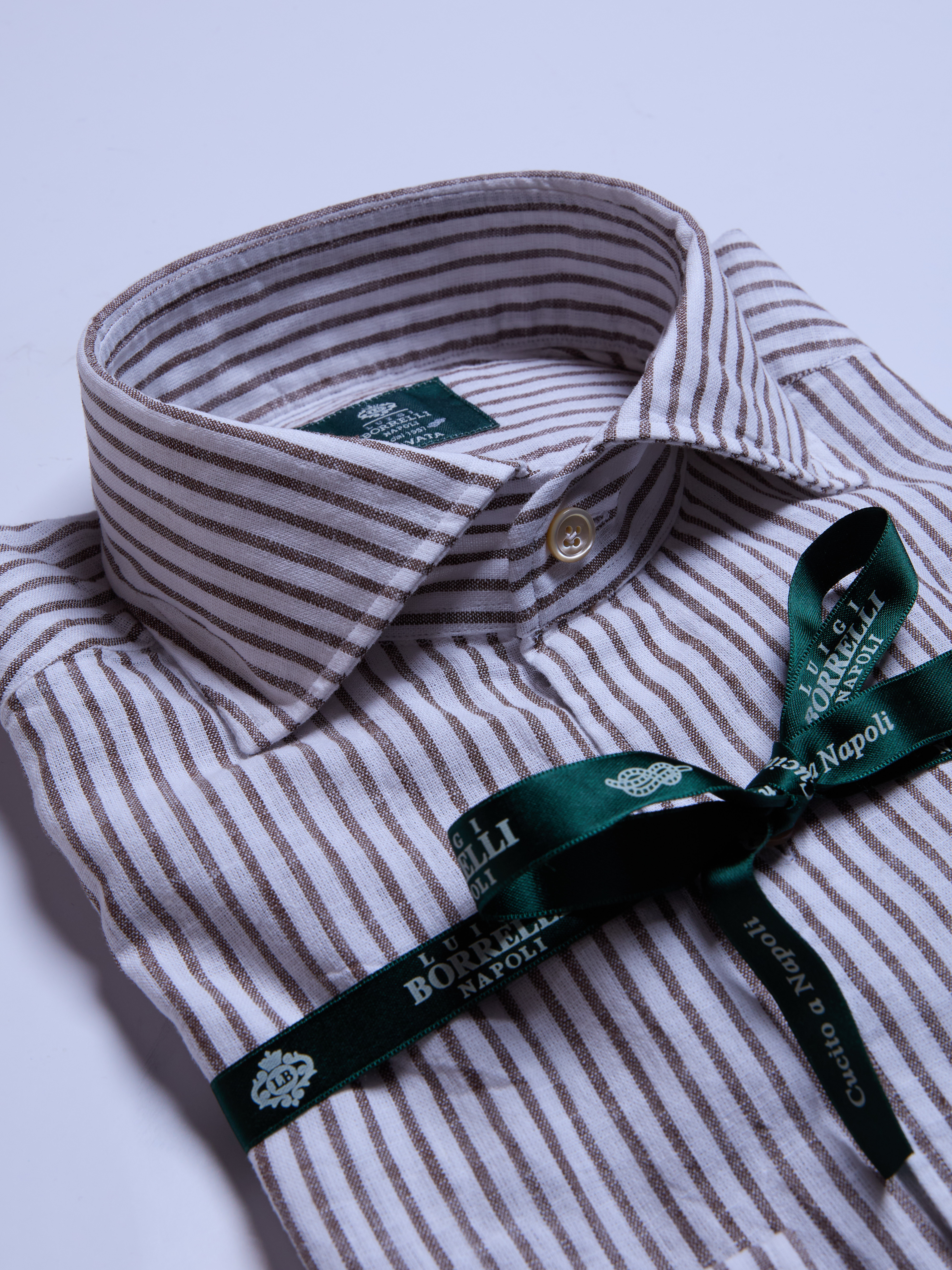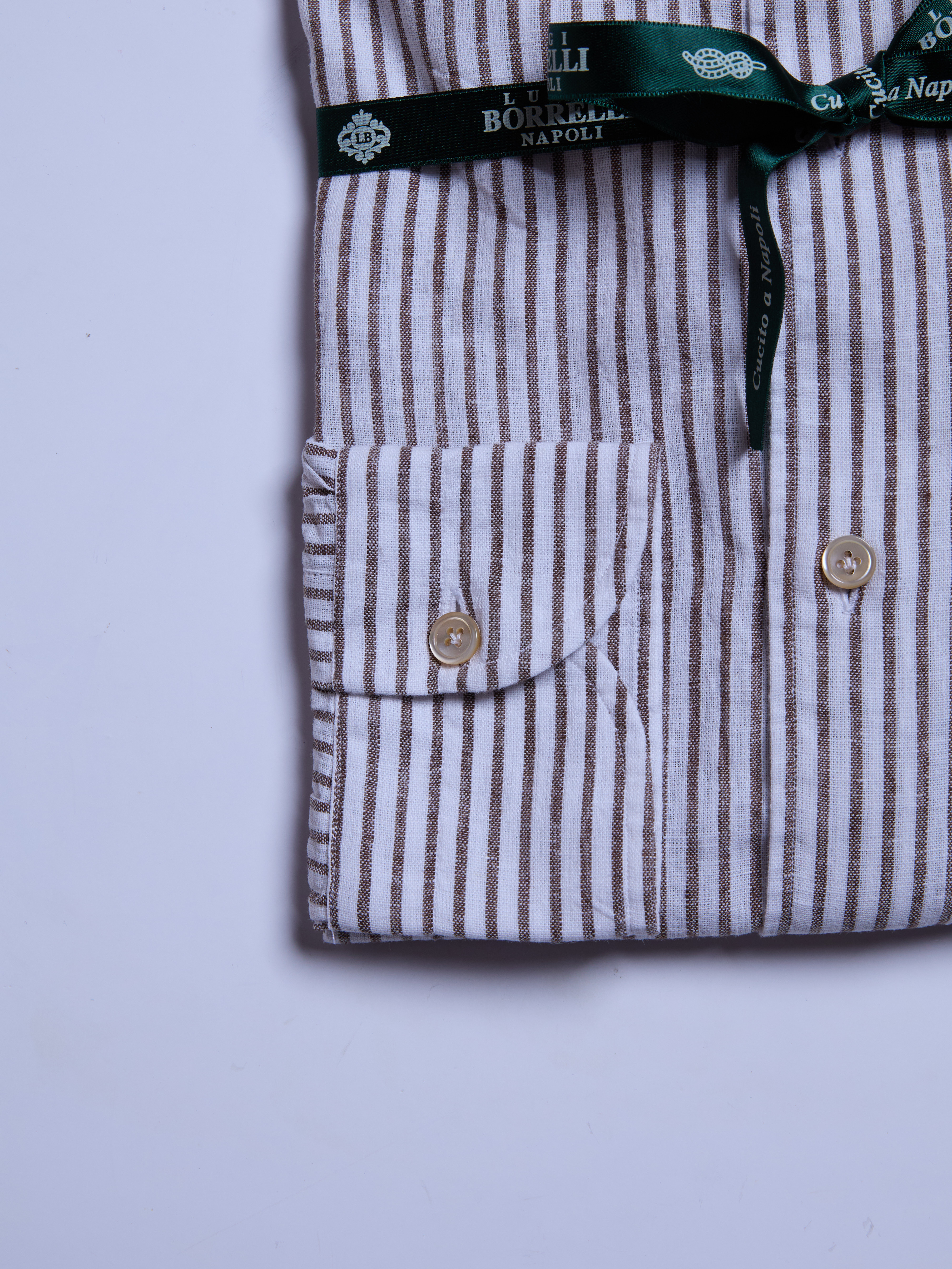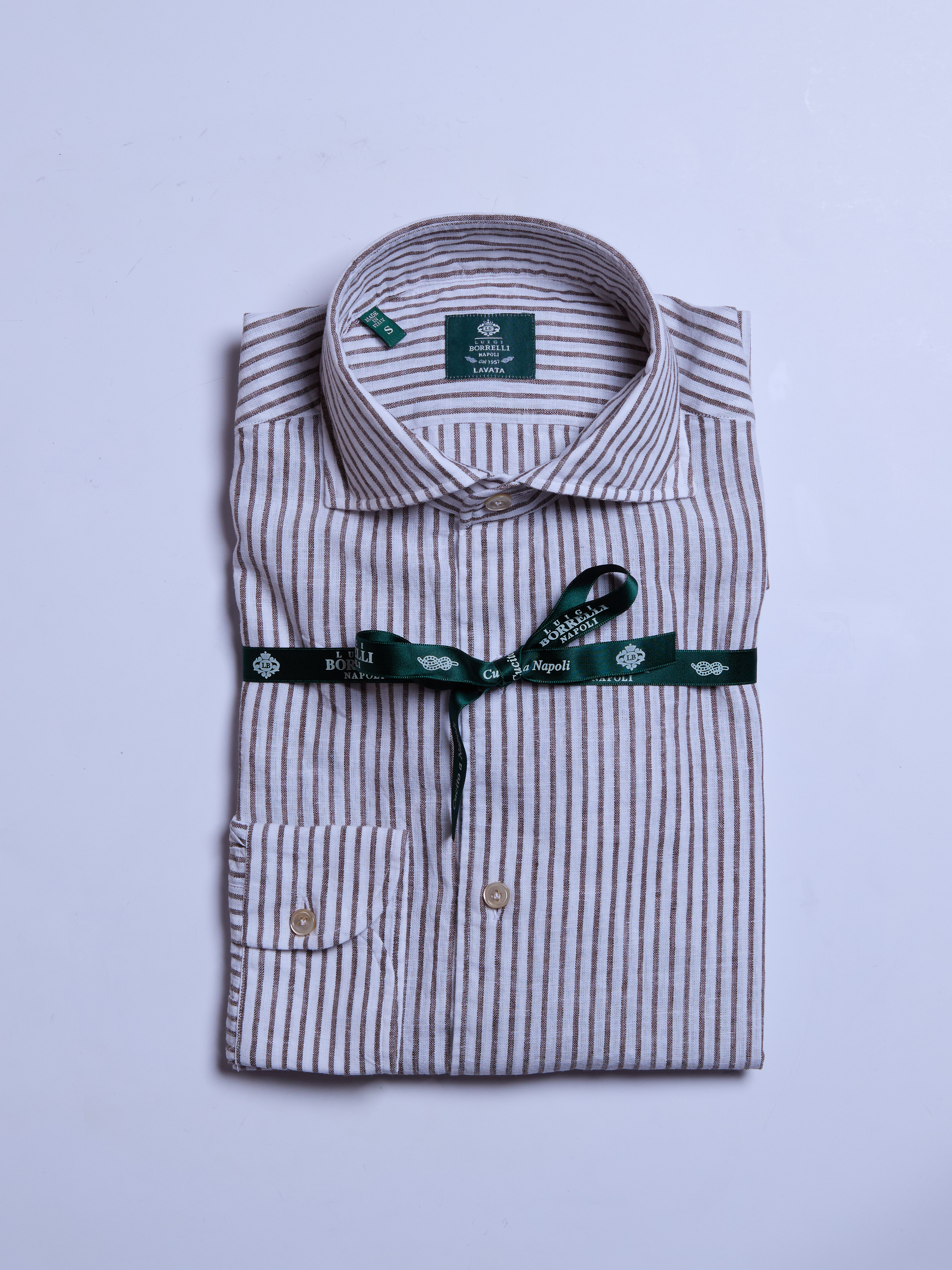 CAMICIA "MISTO LINO" RIGHE - MARRONE