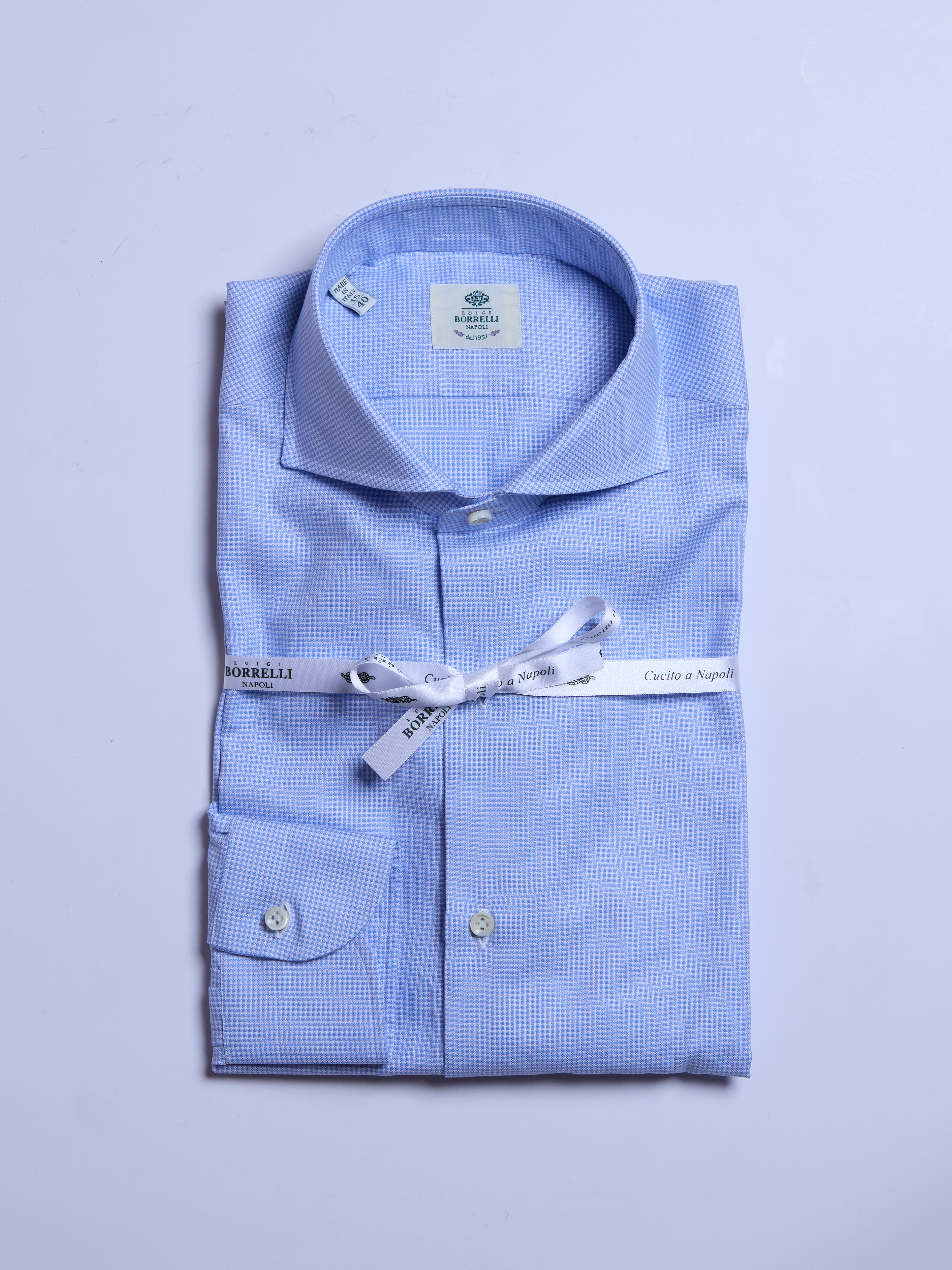 Tutte le nostre camicie sono accuratamente realizzate a mano da maestri sarti specializzati utilizzando i migliori tessuti per offrire un prodotto di qualità superiore e perfetta vestibilità.