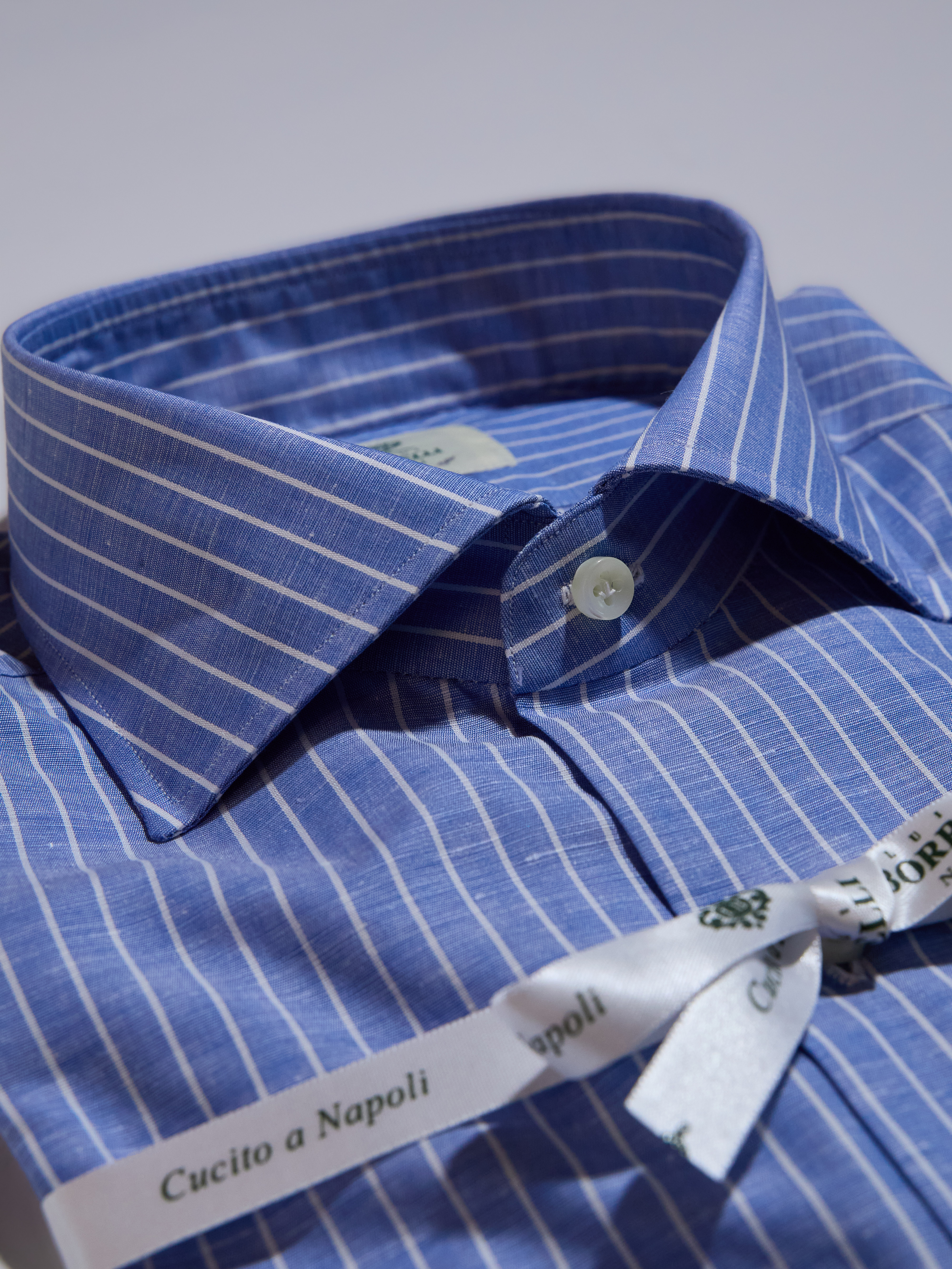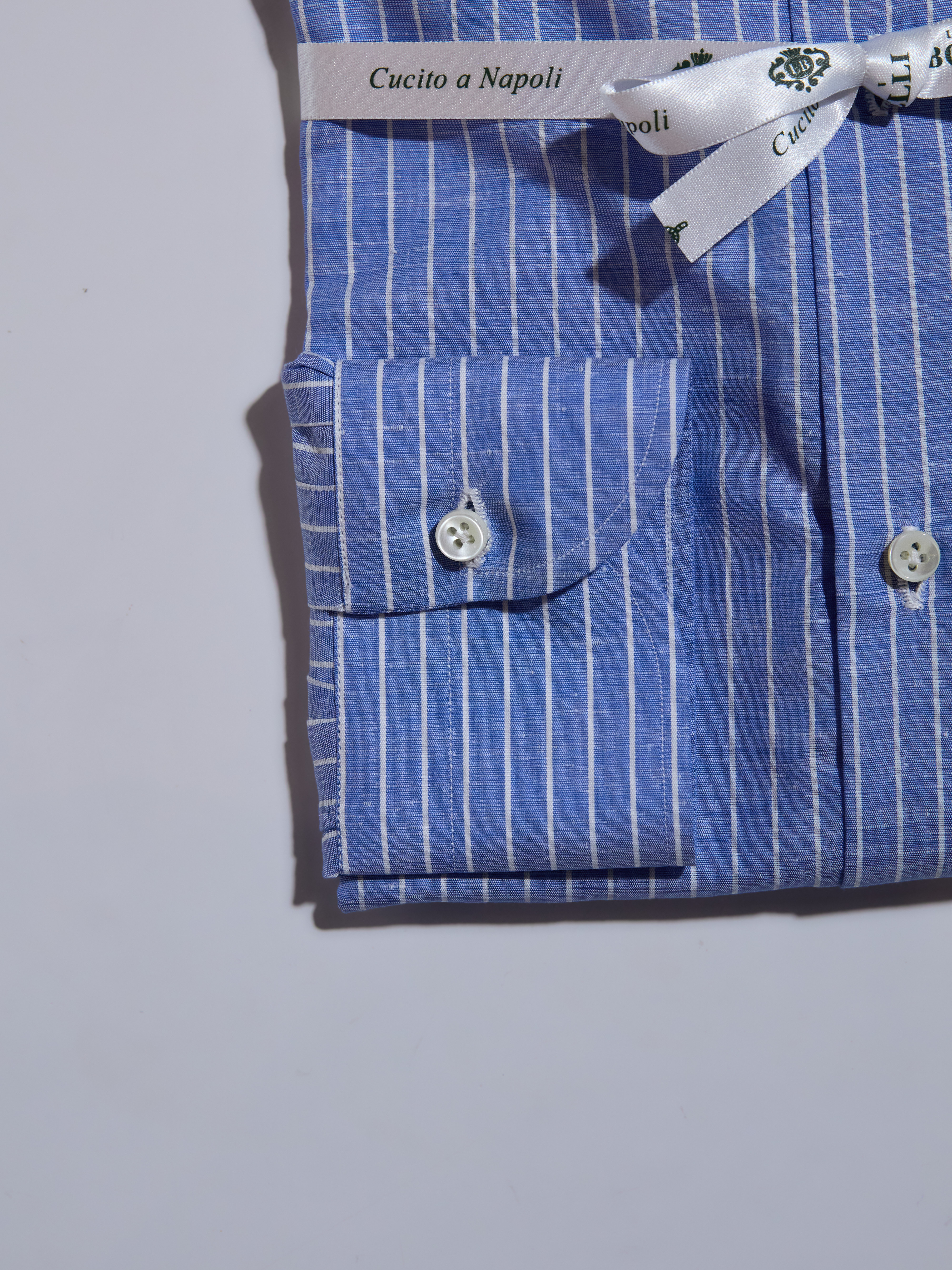 CAMICIA "RIGHE" MISTO LINO - BLU