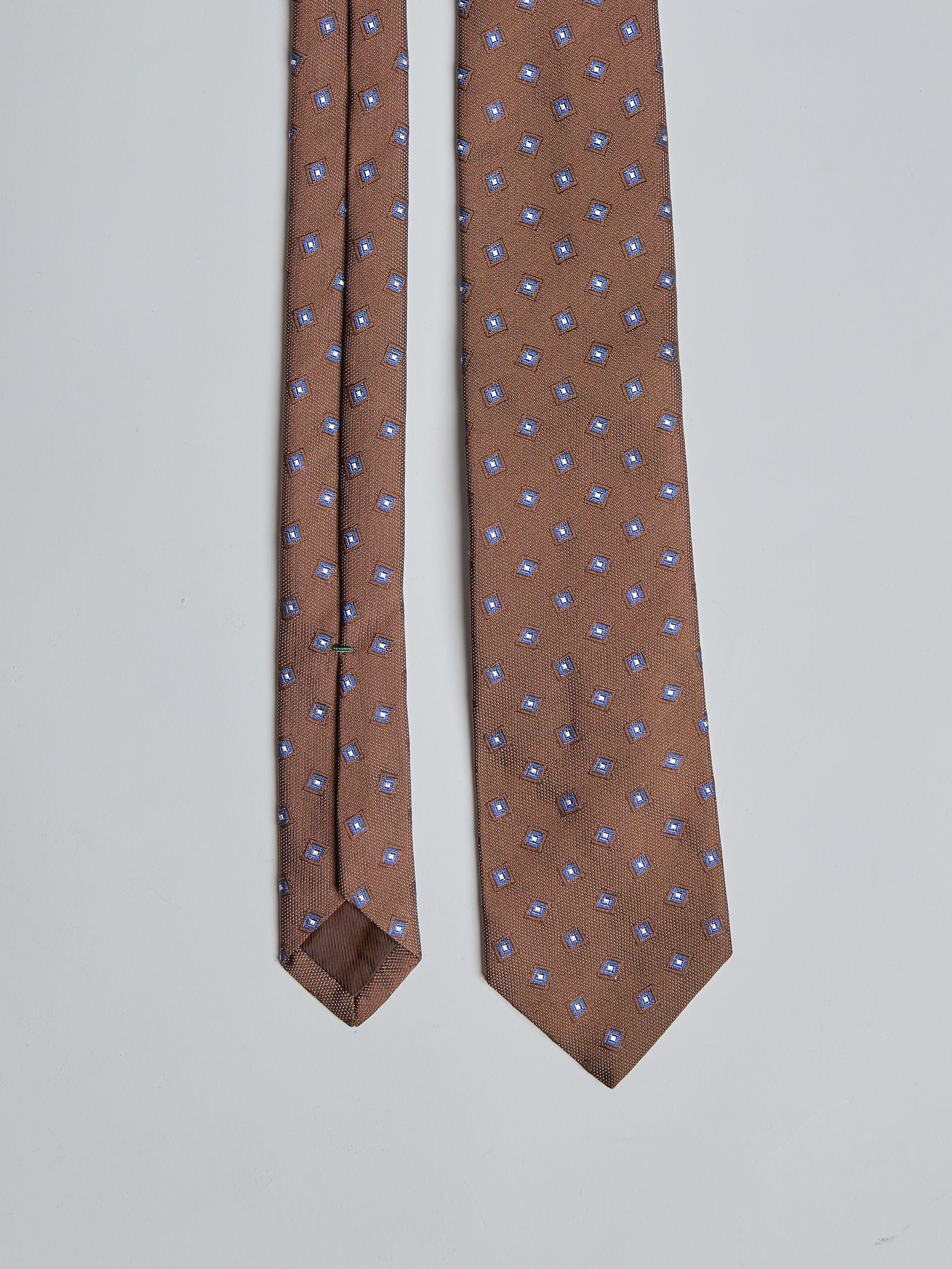 Questa cravatta è stata realizzata interamente a mano, secondo l'antica tradizione napoletana. La selezione dei tessuti più pregiati ed esclusivi e l'attenta lavorazione rendono questa cravatta assolutamente unica nella sua realizzazione.